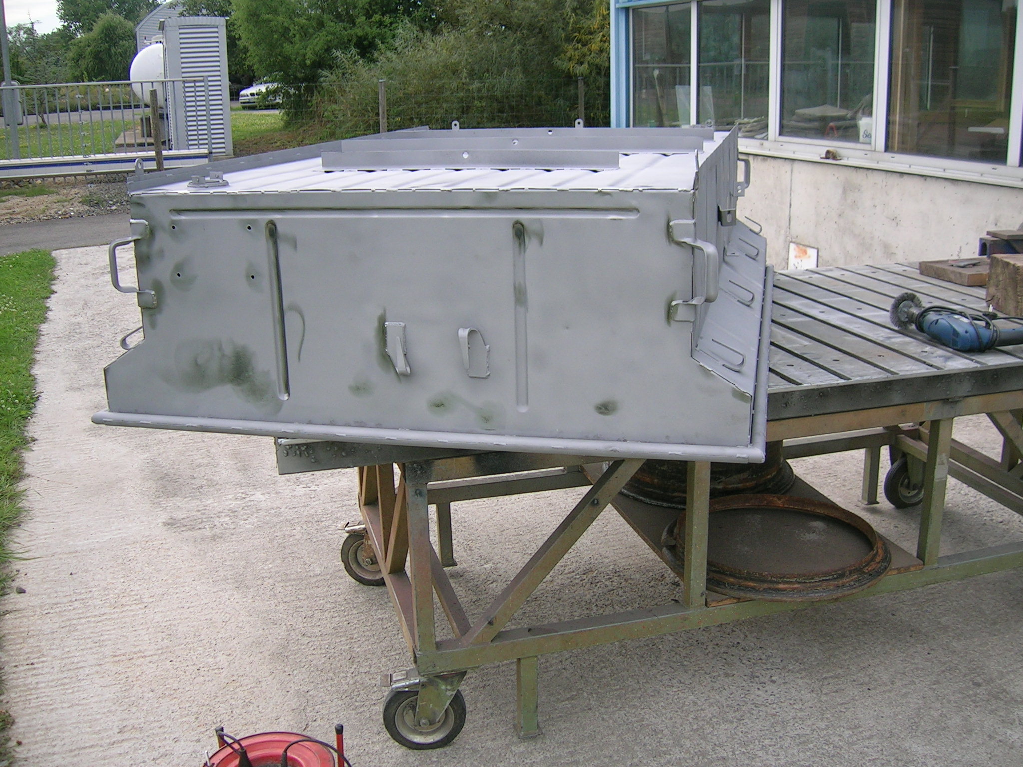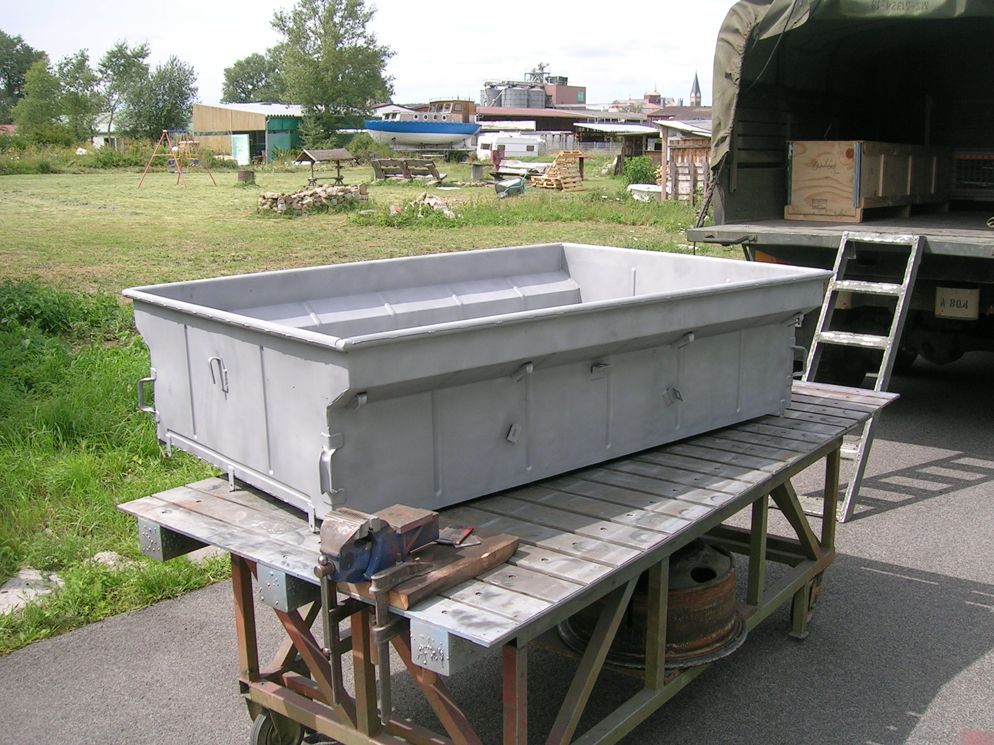 Vor zwei Tagen hatte ich meine Hängerwanne zum Sandstrahlen gefahren, heute habe ich die Hängerwanne wieder abgeholt.