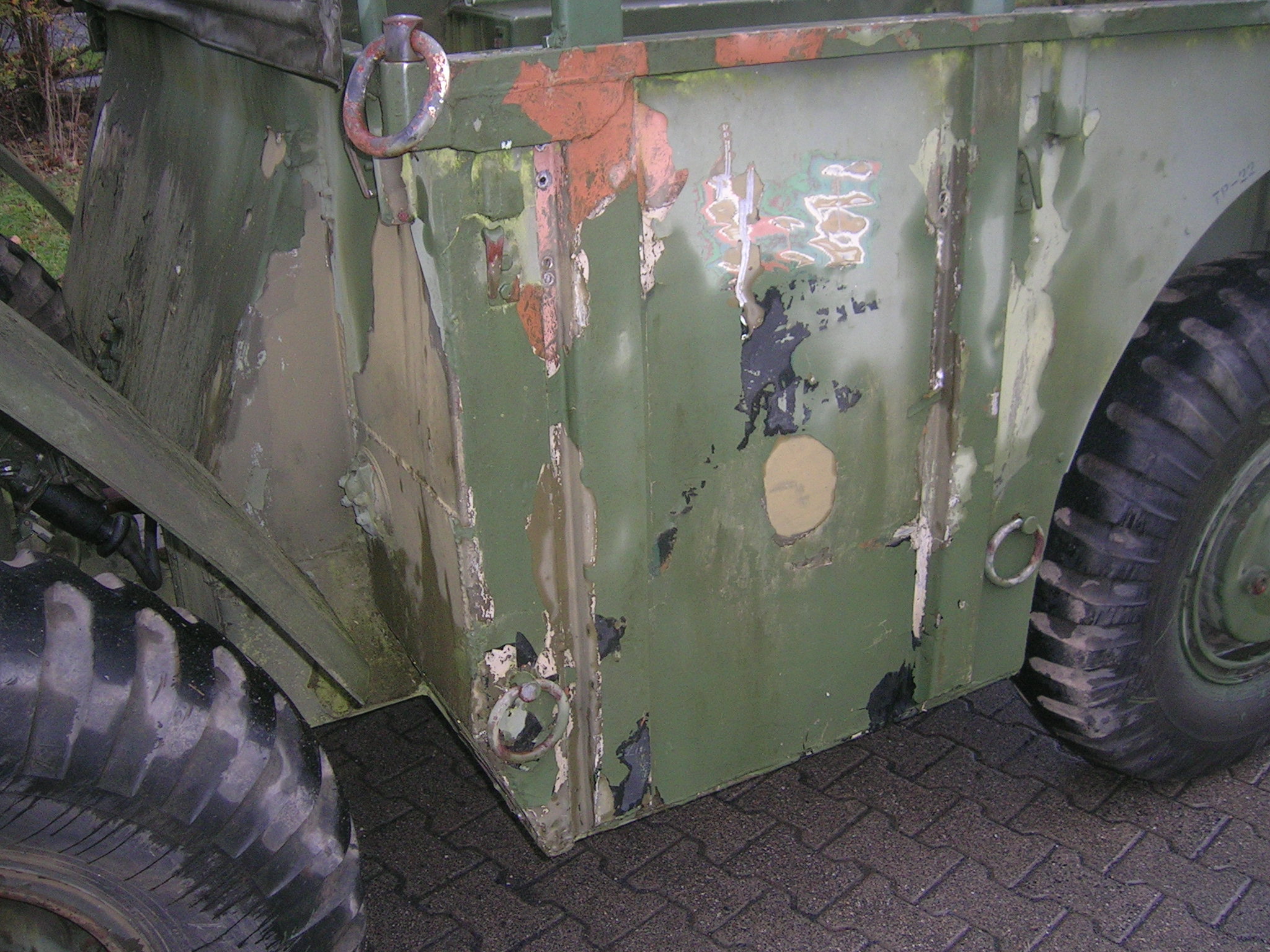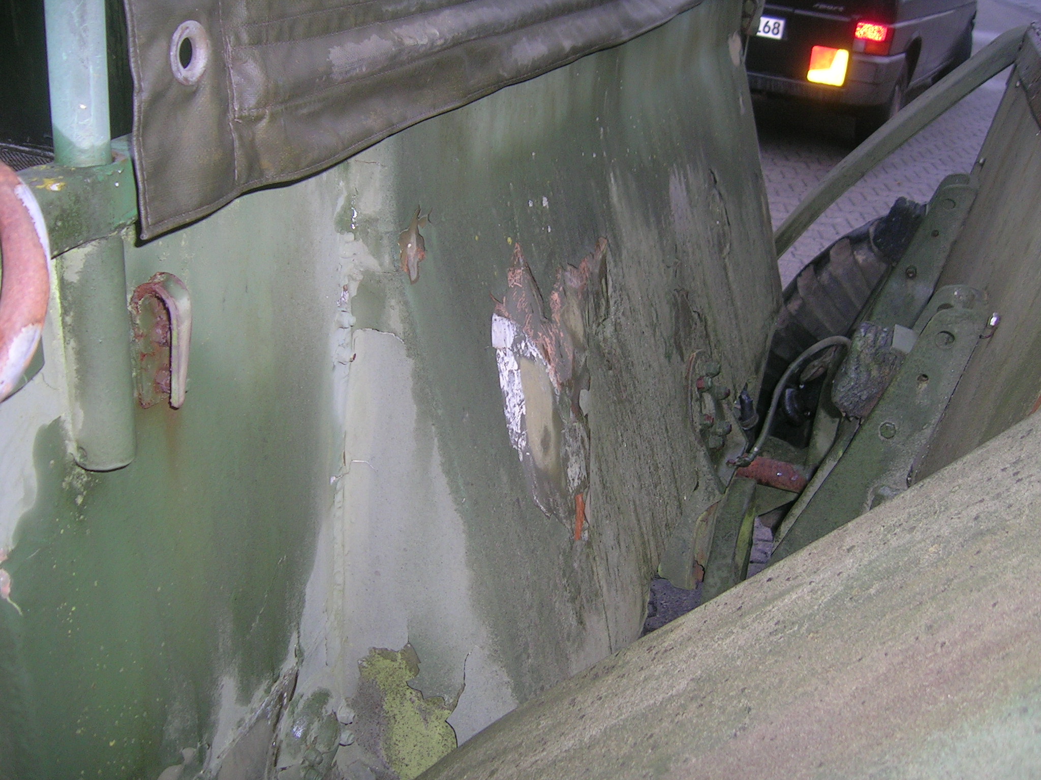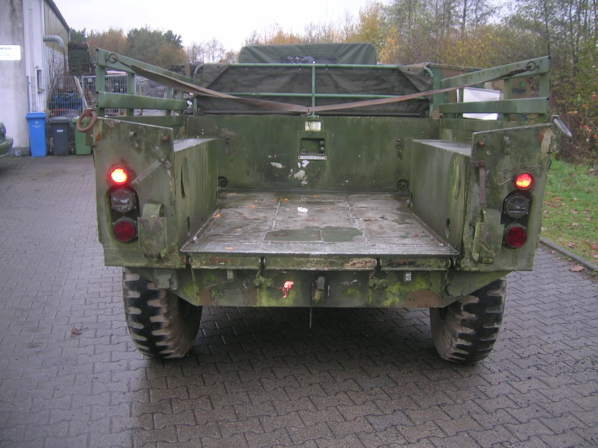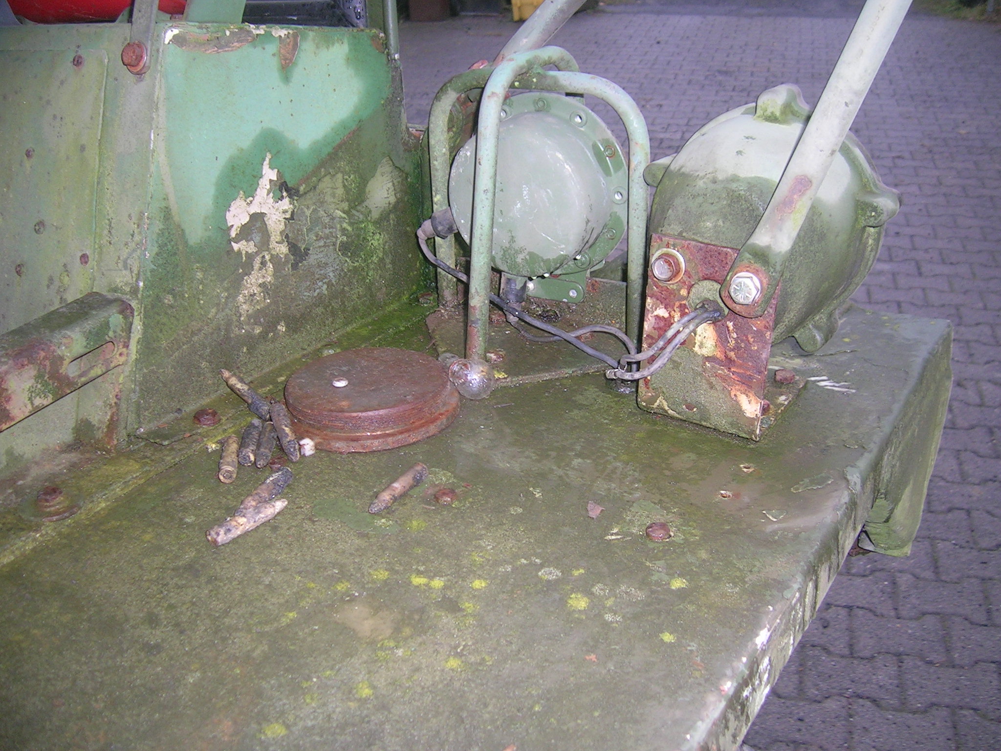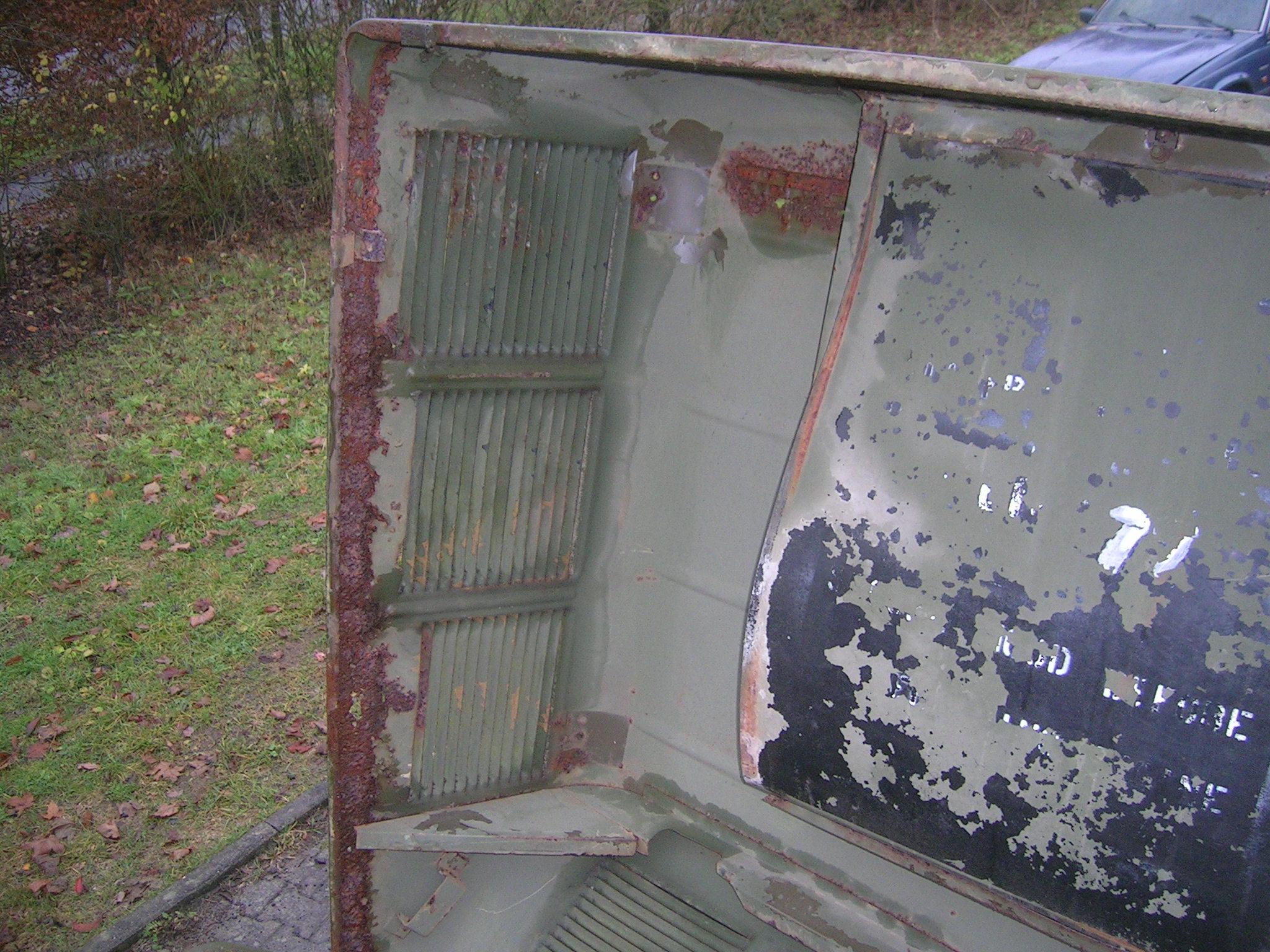 Gestern, also am 13.11.2009 habe ich mich wieder einmal auf die Suche gemacht. Zwei Bekannte und ich haben an diesem Freitag über 860 Kilometer abgespult. Wir besuchten Harald Klyne in Neustadt – Wied und haben dabei zwei Gama Goats begutachtet. Da der Markt für Gama Goats relativ klein ist, ist es natürlich etwas schwieriger überhaupt ein solches Fahrzeug aufzutreiben. Anschließend sind wir auf der A1 Richtung Norden weitergefahren um einen weiteren Gama Goat anzuschauen, zu dem ich leider keine Bilder habe. Der weitere Gama Goat war vom Lack her besser und vollständig. Glücklicherweise konnte ich hier gleich etwas Farbe kaufen. Insgesamt konnte ich 3 Gallonen (zirka 11,5 Liter) der Farbe Field Drab 30118 mit nach Hause nehmen. Nun habe ich zirka 18 Liter Field Drab in meinem „Tresor“.