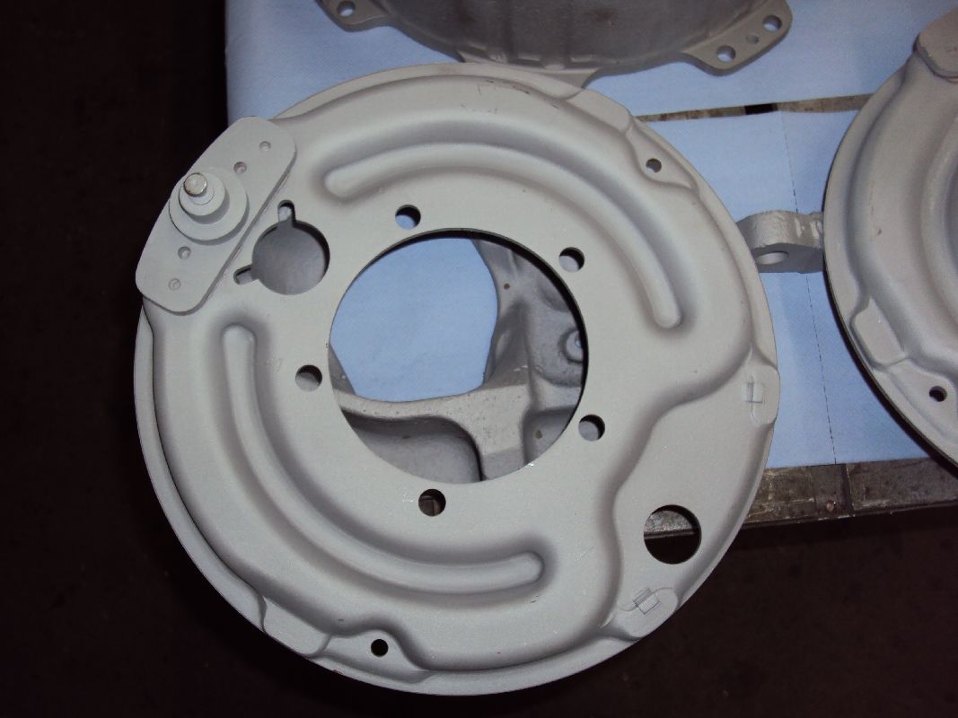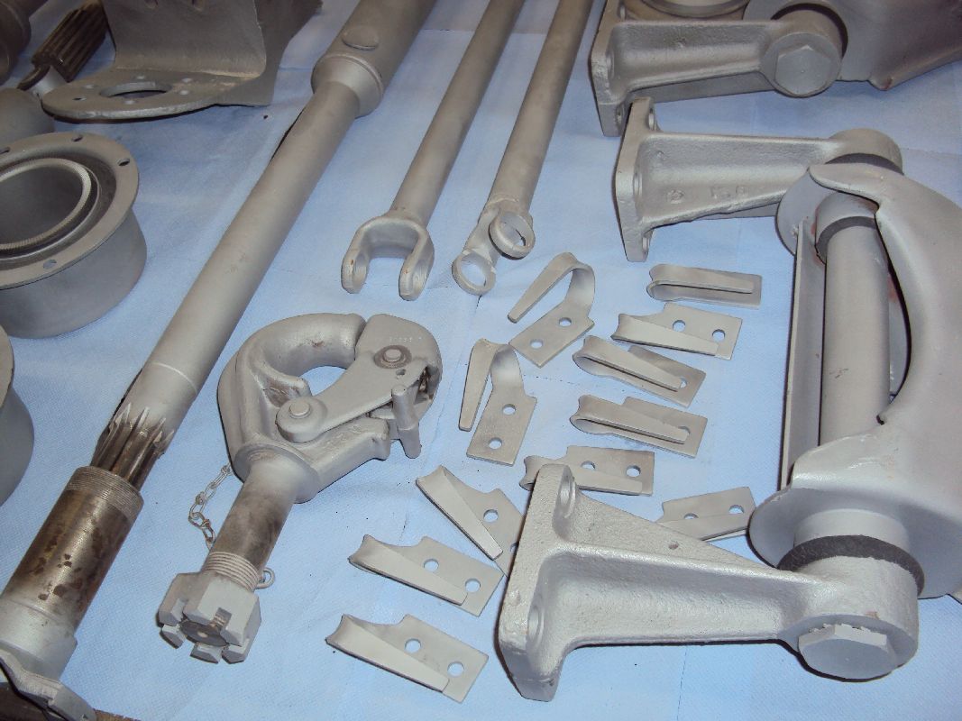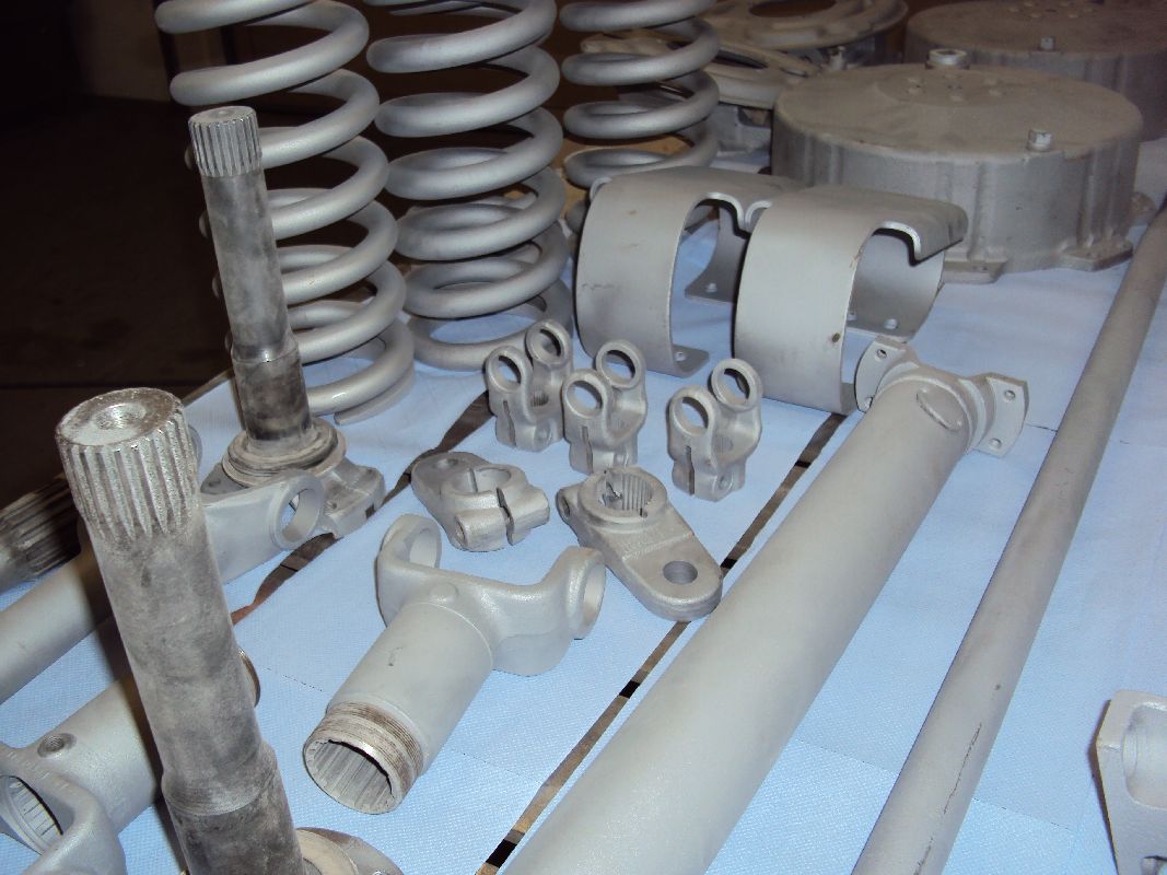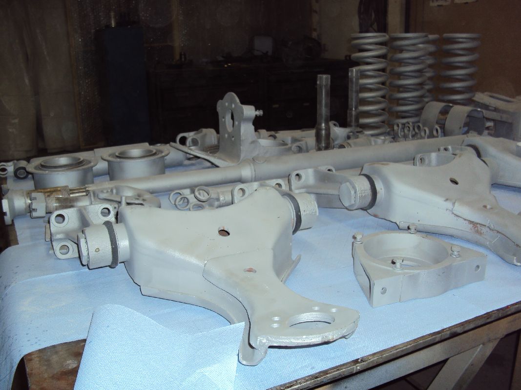 Gestern habe ich die ersten Teile vom Sandstrahlen geholt. Die Teile sind  nun komplett von altem Schmutz und Öl befreit, nun kann ich anfangen zu grundieren. Bei diesen Aussentemperaturen ist das natürlich nicht so einfach, ich kann allerdings mit meinem Feldheizgerät die Halle aufheizen (sowie auch die Teile).