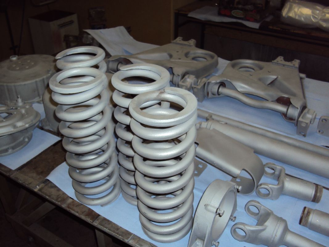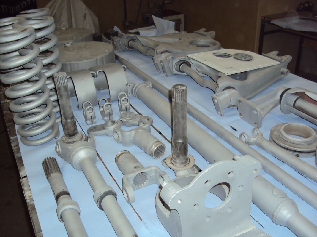 Die Antriebswellen und alles was mit der Aufhängung zu tun hat wird RAL 9005 – schwarz (seidenmatt). Die Spiralfedern werden in der gleichen Farbe pulverbeschichtet. Stoßdämpfer werden CARC 383 usw.