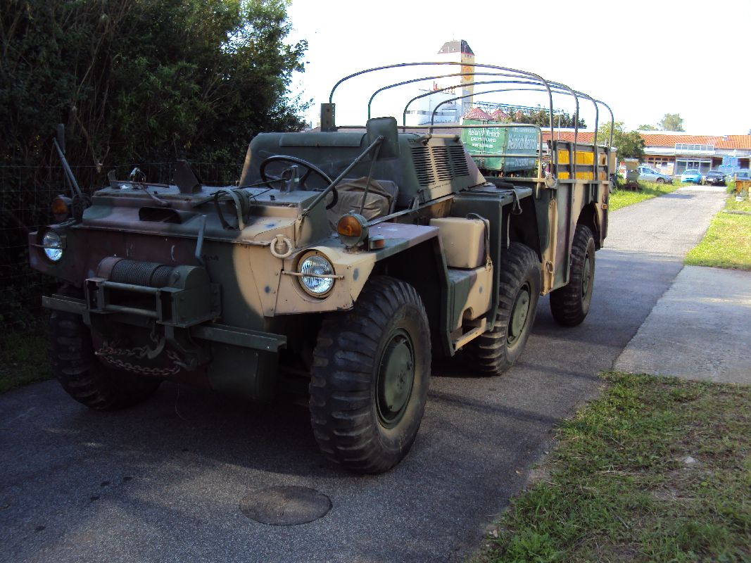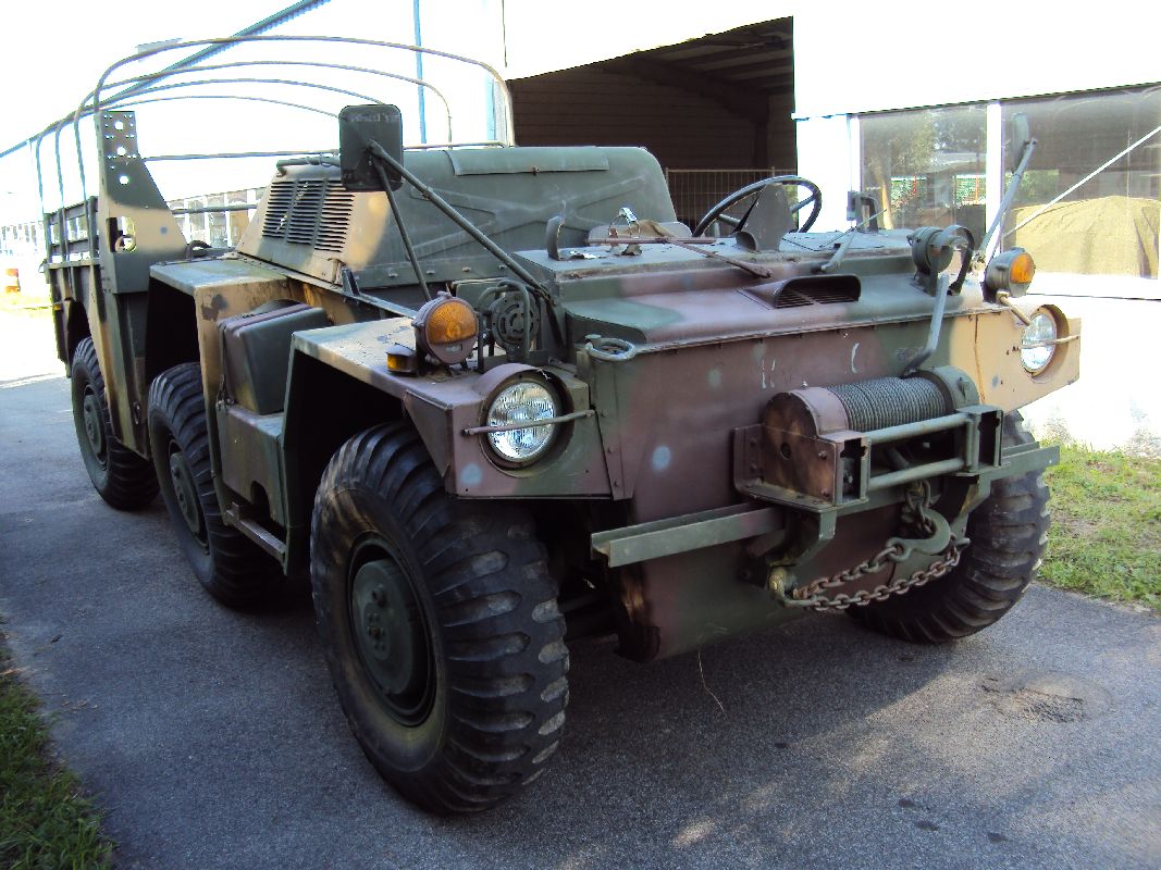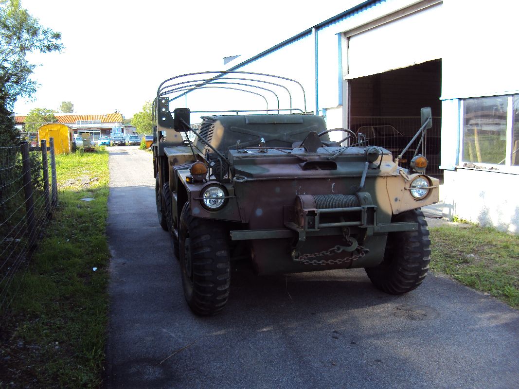Schon vor einigen Wochen habe ich mir das Gama Goat gekauft. Scheinbar hat es tatsächlich nicht mehr als 1.200 Meilen drauf, allerdings muss einiges dran gemacht werden da es schon einige Zeit steht. Wie wahrscheinlich jeder weis, handelt es sich bei diesem Fahrzeug um ein schwimmfähiges Fahrzeug der US Army.