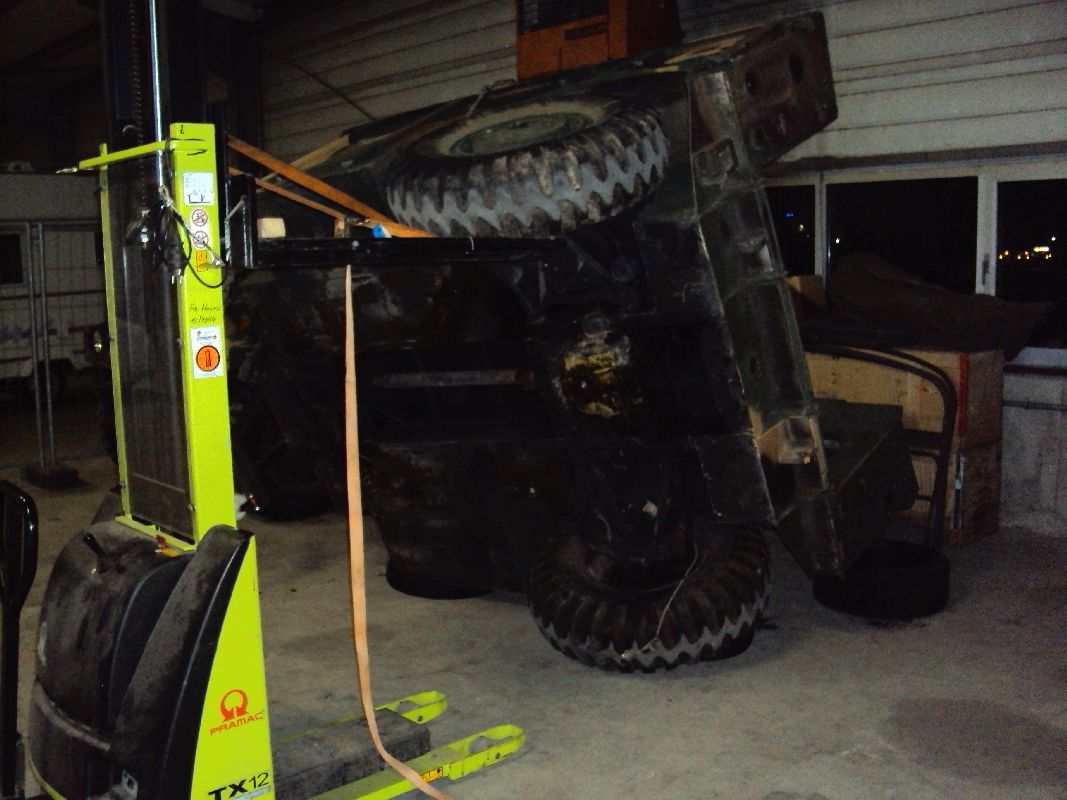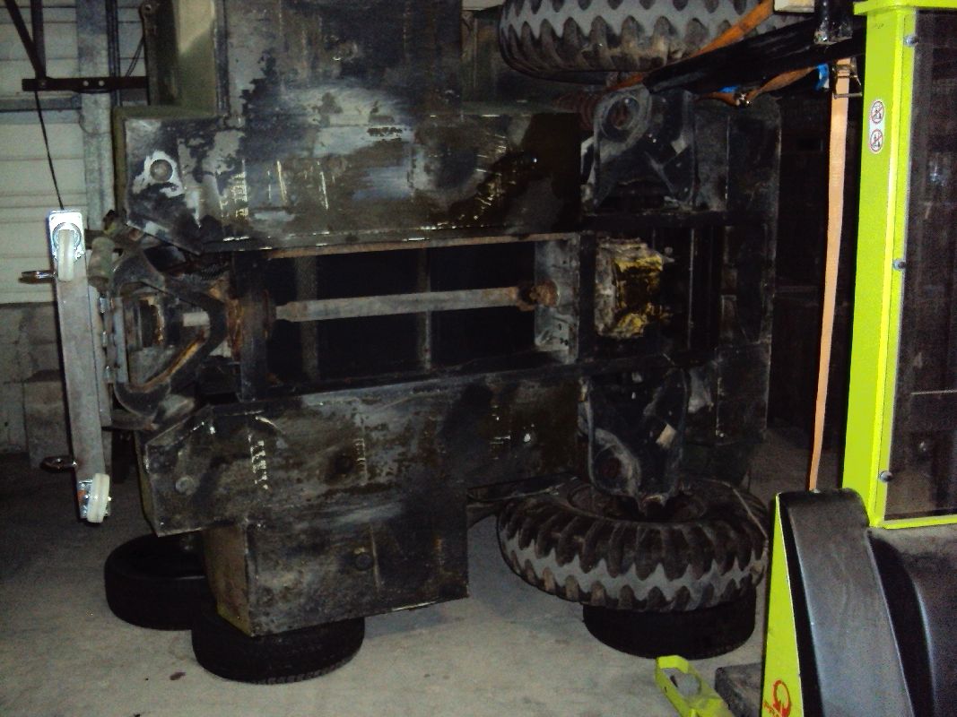 Momentan mache ich mich erst einmal an den Carrier, der wahrscheinlich relativ schnell erledigt ist (8-12 Wochen). Heute habe ich den Hänger auf die Seite gelegt und schon einmal den Kabelbaum und das Lenkgestänge ausgebaut (bis zum hinteren Lenkgetriebe). Bei der Kardanwelle habe ich ein kleines Problem, hier geht ein Kugellager nicht ab. Wenn ich dieses Kugellager nicht abbekomme, dann kann ich die Welle nicht ausbauen. Ich werde es am Montag mit etwas Wärme am Lager versuchen, müsste eigentlich funktionieren.