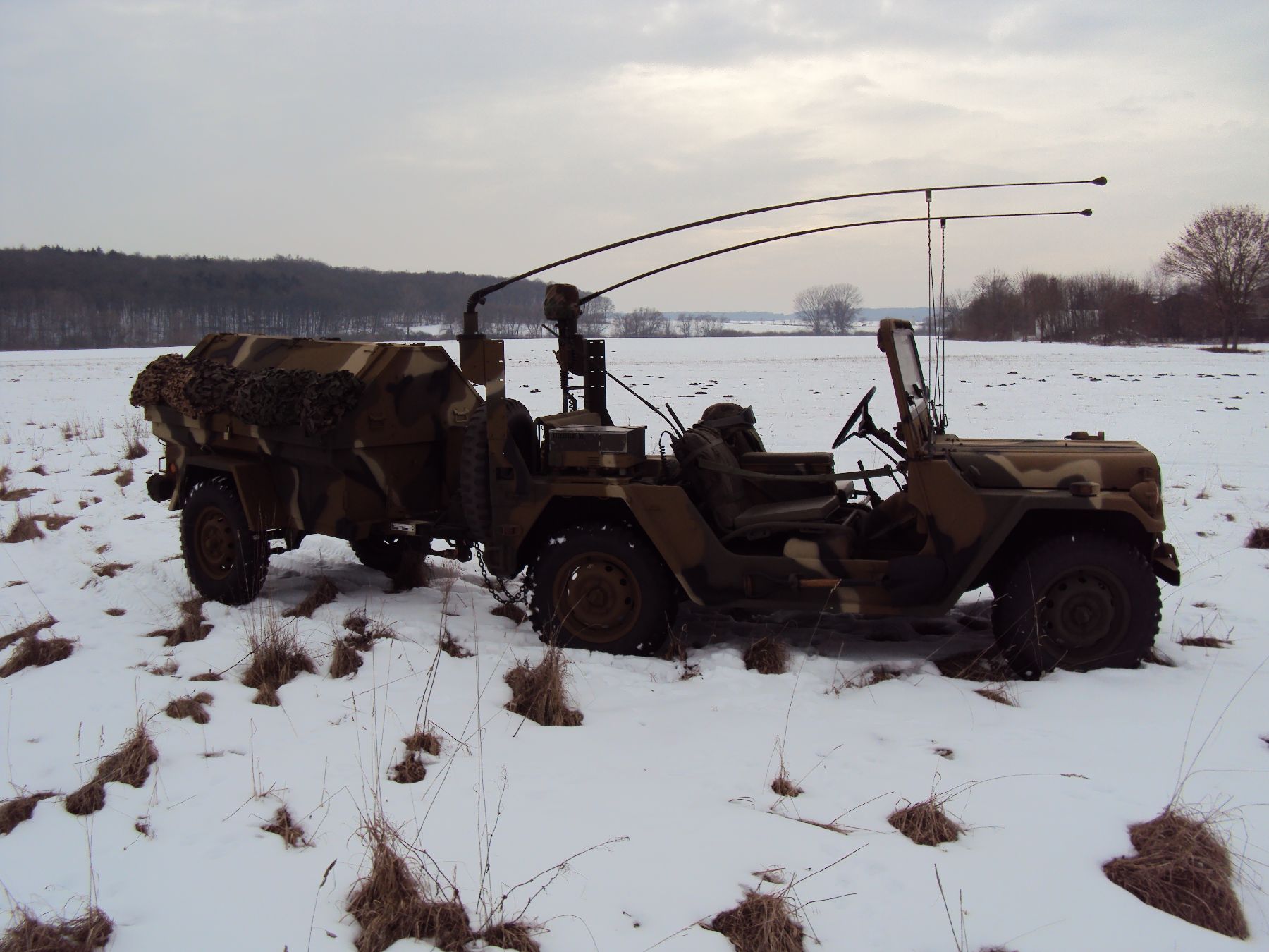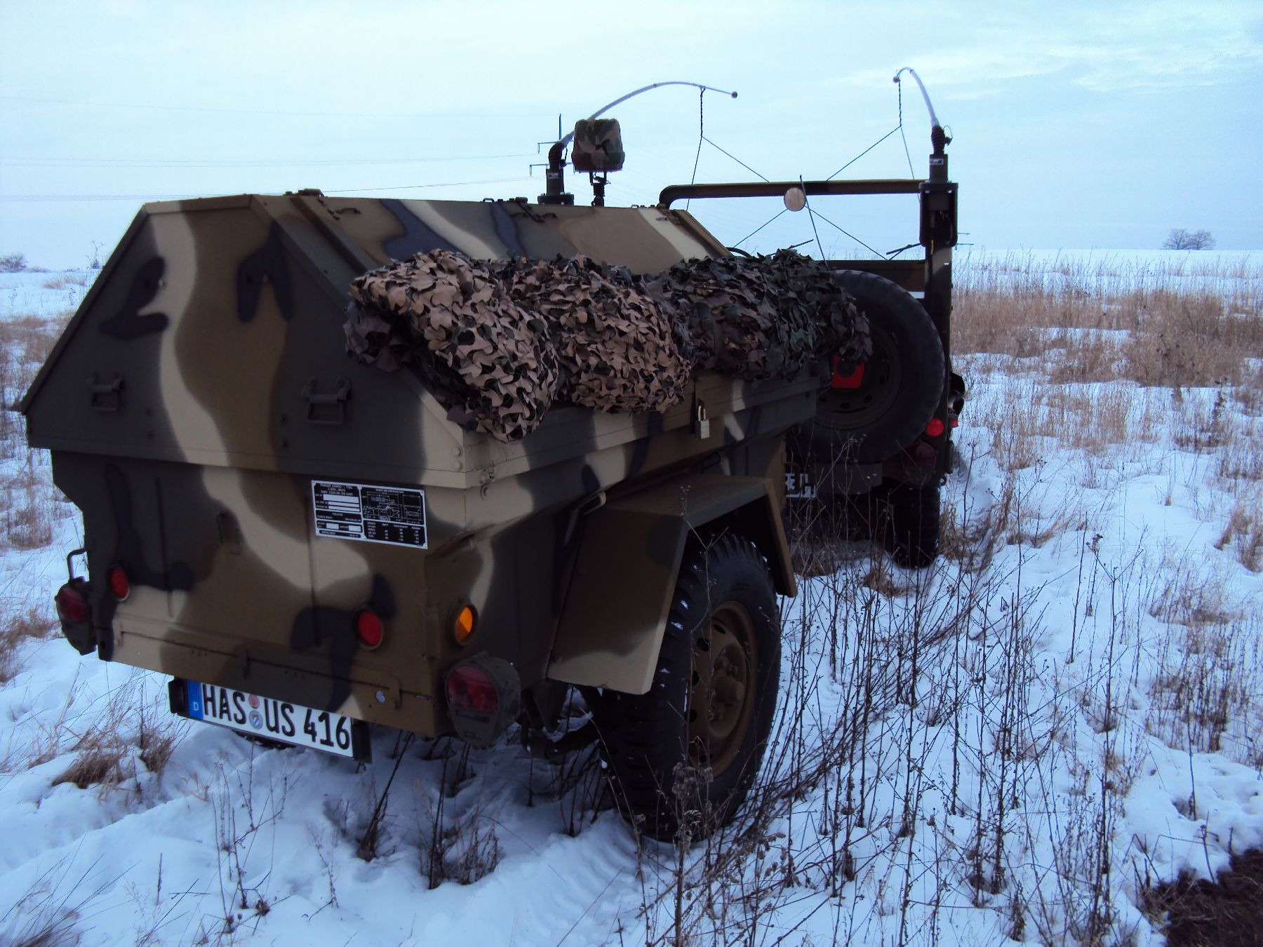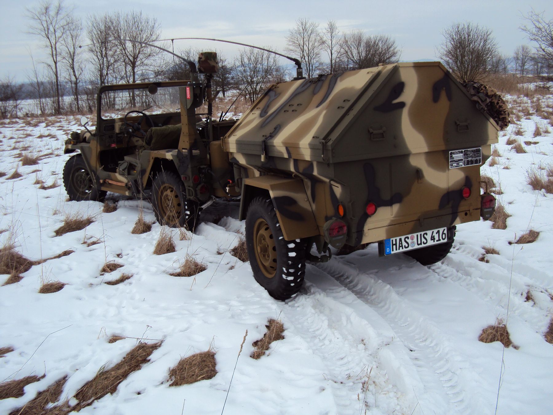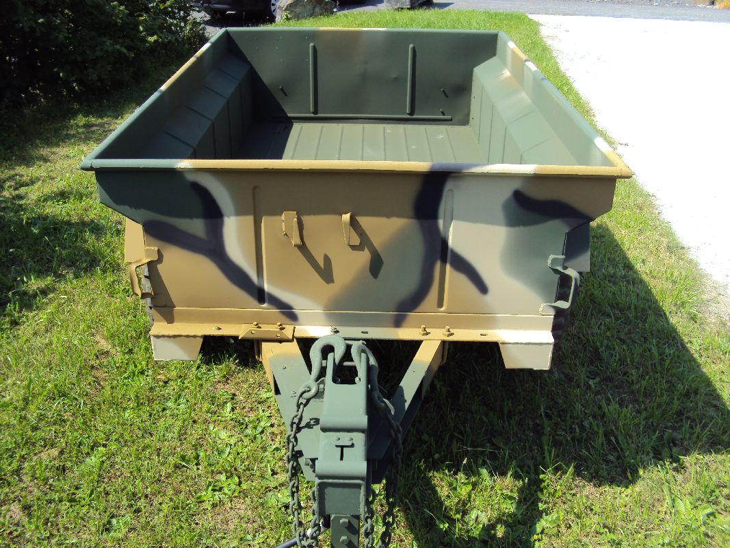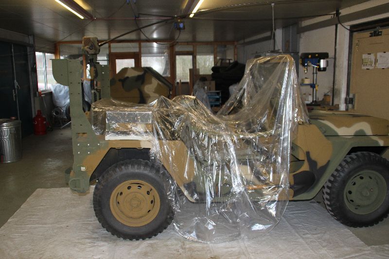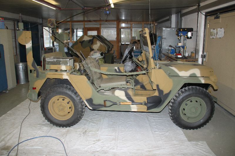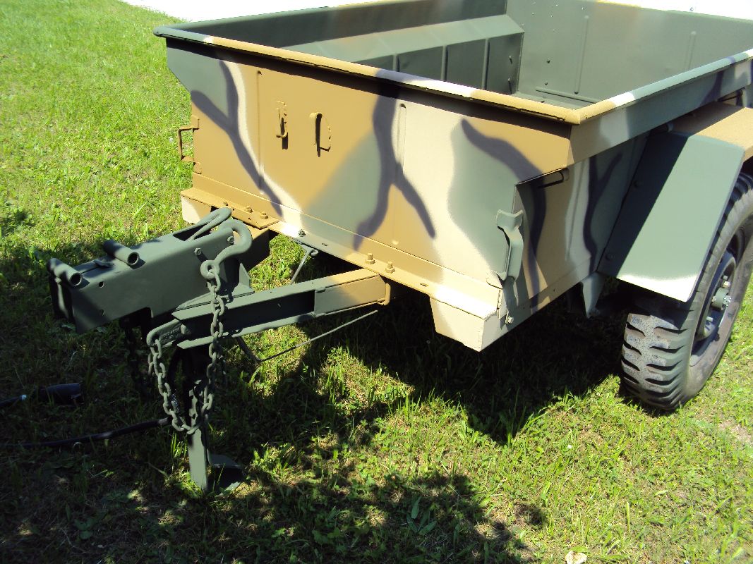 Nach vielen Problemen mit der Farbe und nach langer Zeit habe ich nun endlich die Farbe drauf. Natürlich habe ich das Teil wieder mit 4 Farben nach dem MERDC-Tarnschema lackiert (Tarnschema etwas leicht verändert). Die Anhängerwanne werde ich innen nochmals lackieren, da einiges an Farbnebel rein ging und sichtbar ist. Es ist natürlich noch einiges zu machen, sollte aber in den nächsten 14 Tagen erledigt sein (mir fehlt noch der Stoßdämpfer für die Auflaufbremse).