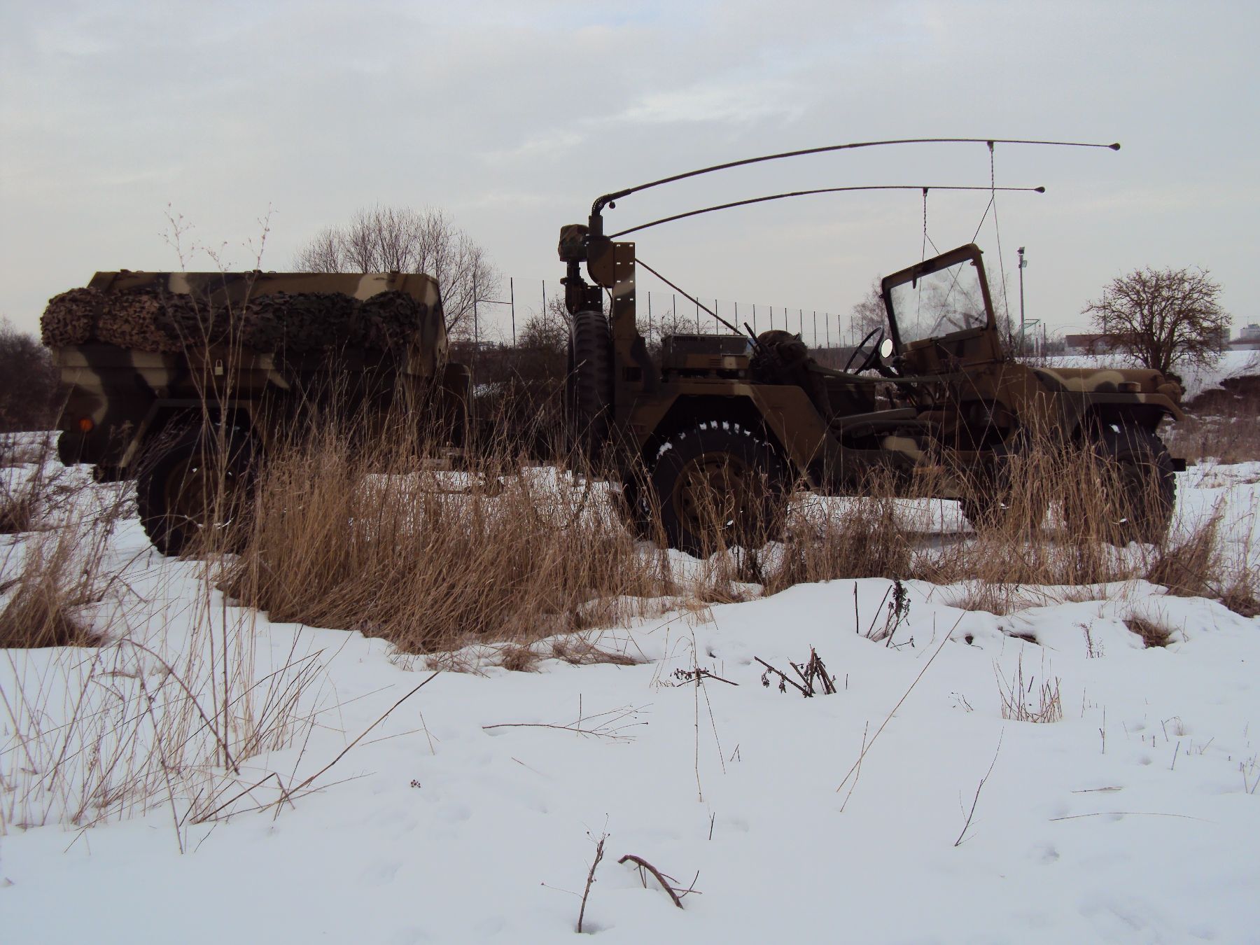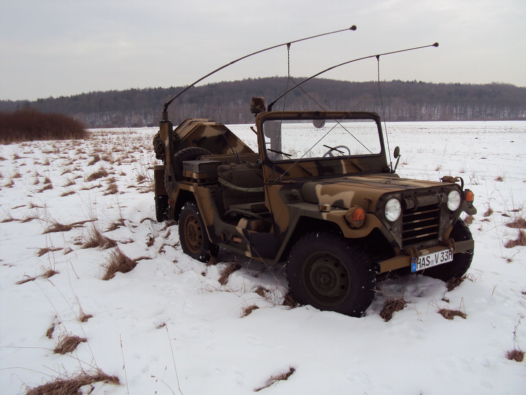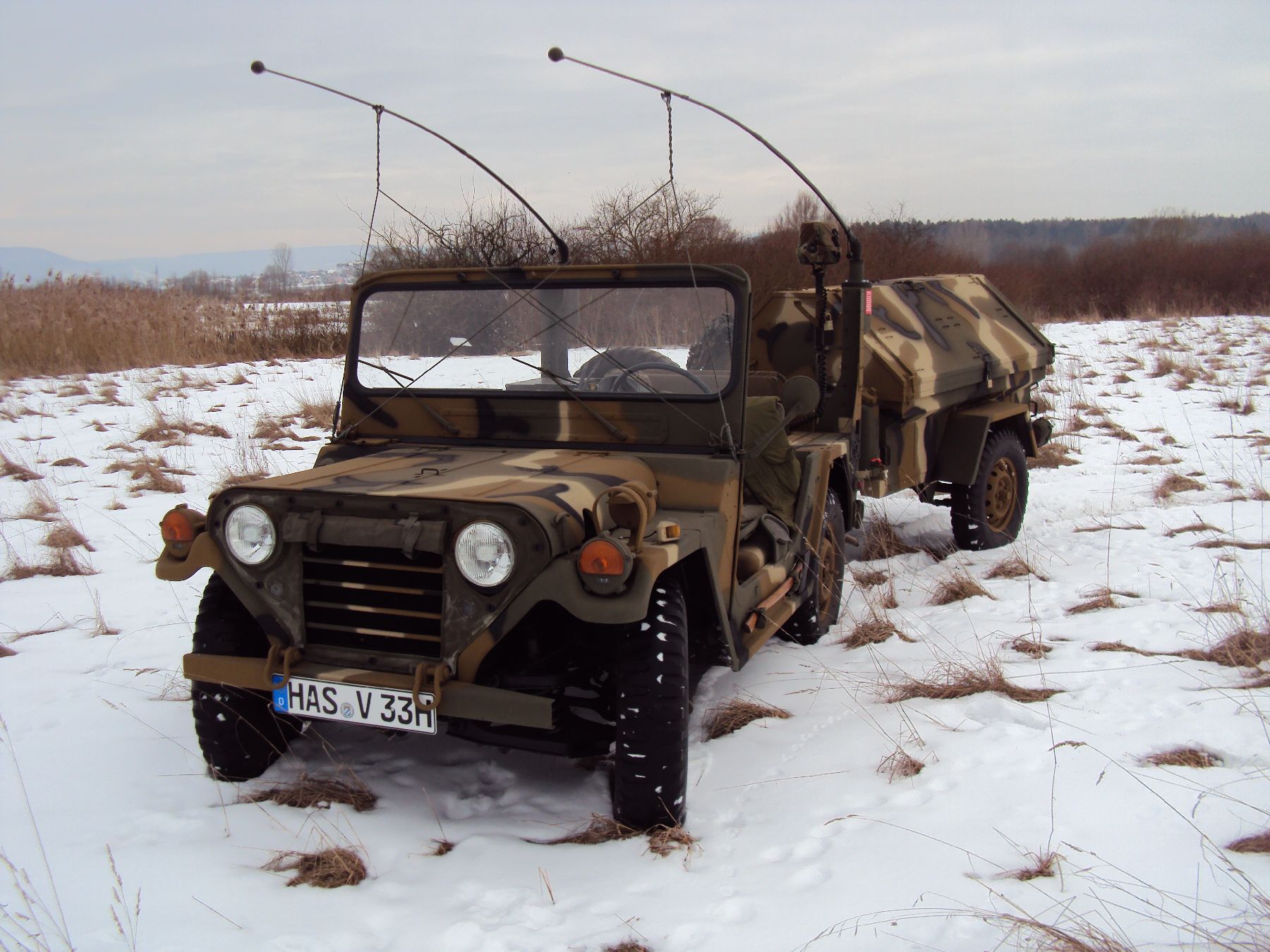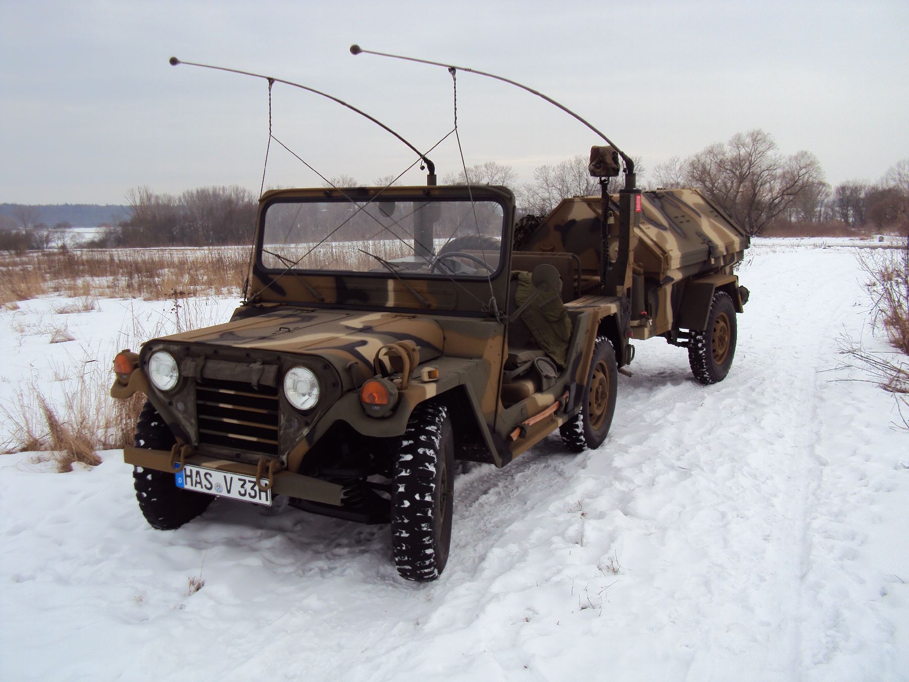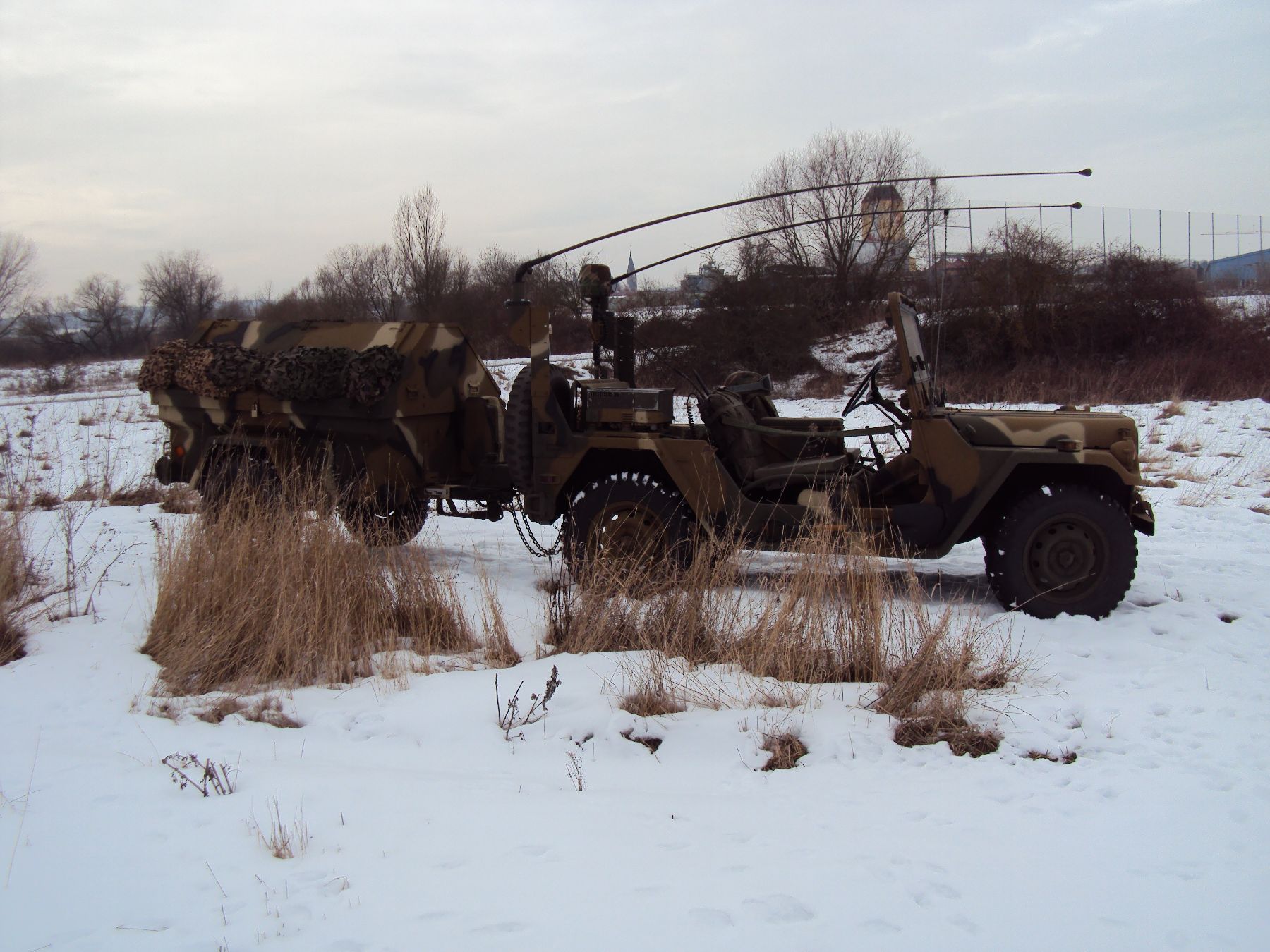 Nach vielen Problemen mit der Farbe und nach langer Zeit habe ich nun endlich die Farbe drauf. Natürlich habe ich das Teil wieder mit 4 Farben nach dem MERDC-Tarnschema lackiert (Tarnschema etwas leicht verändert). Die Anhängerwanne werde ich innen nochmals lackieren, da einiges an Farbnebel rein ging und sichtbar ist. Es ist natürlich noch einiges zu machen, sollte aber in den nächsten 14 Tagen erledigt sein (mir fehlt noch der Stoßdämpfer für die Auflaufbremse).