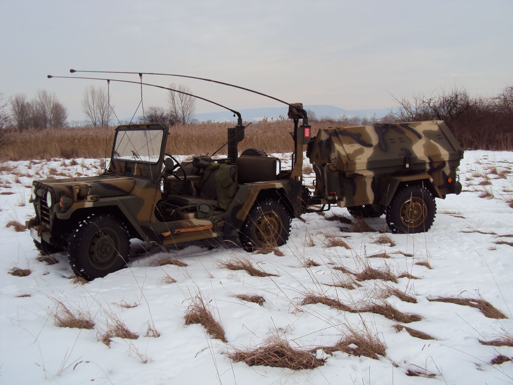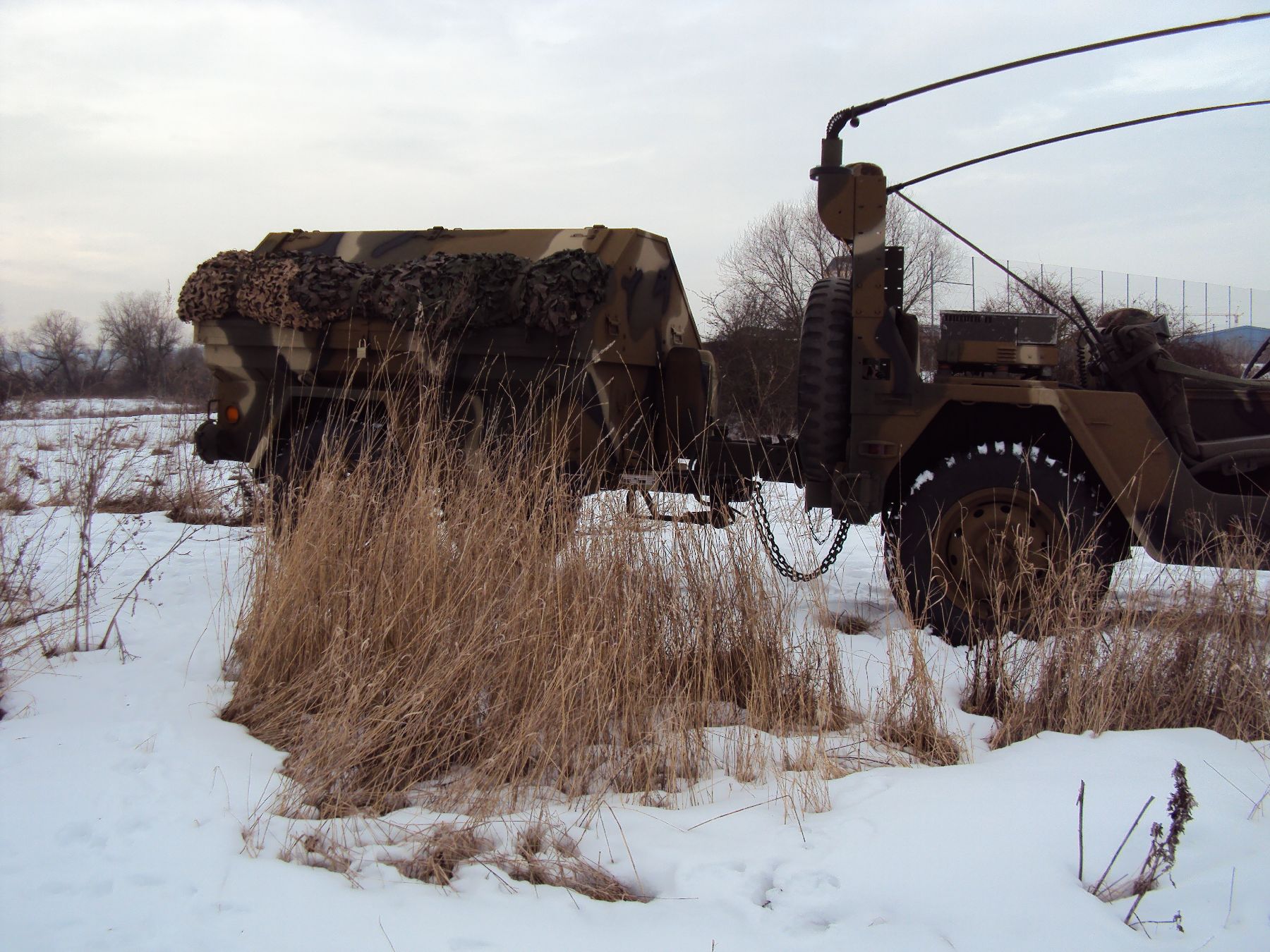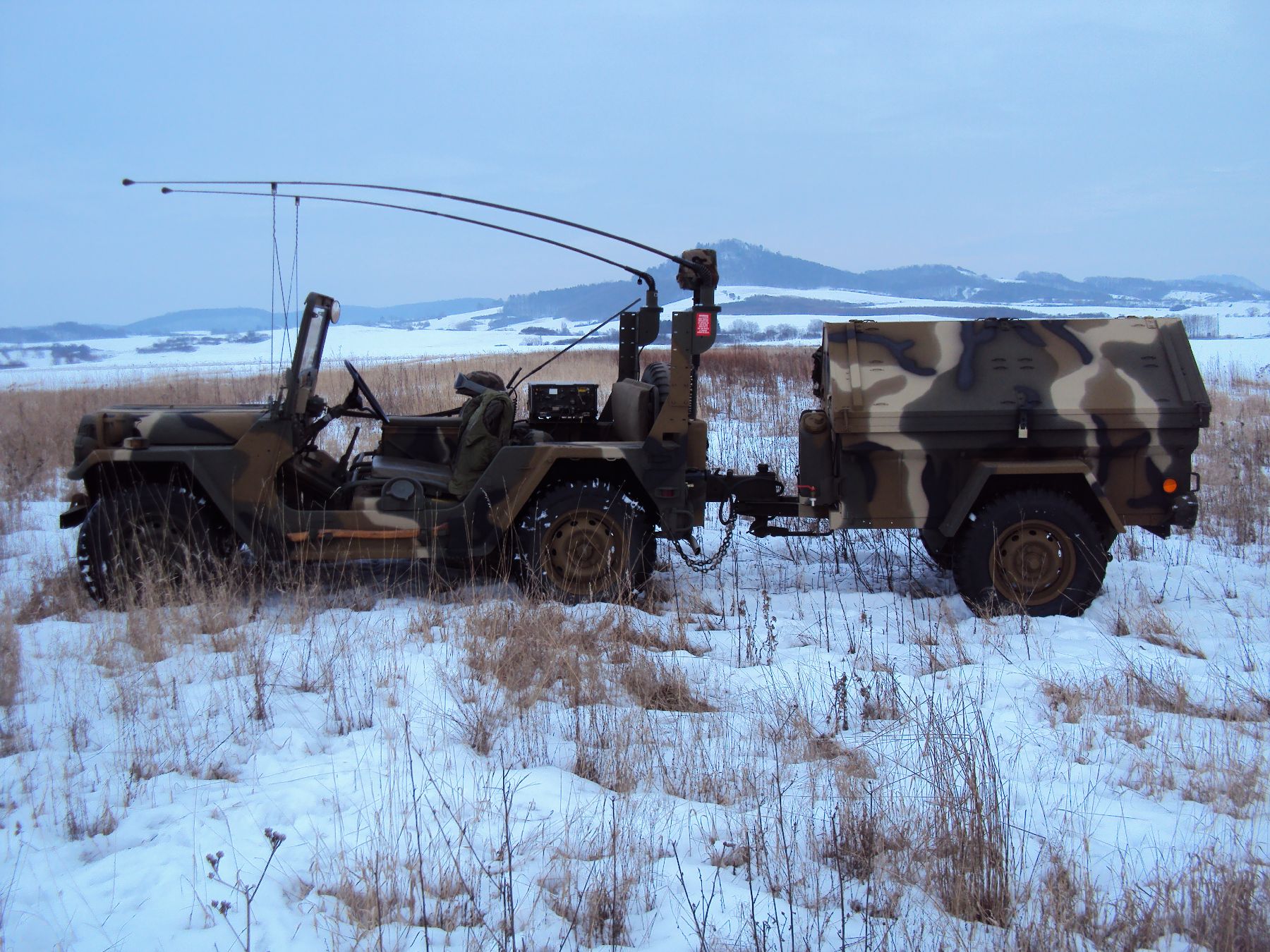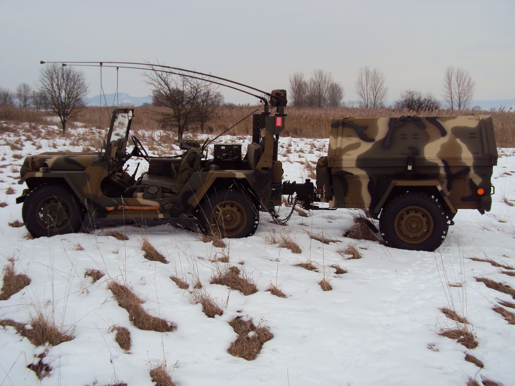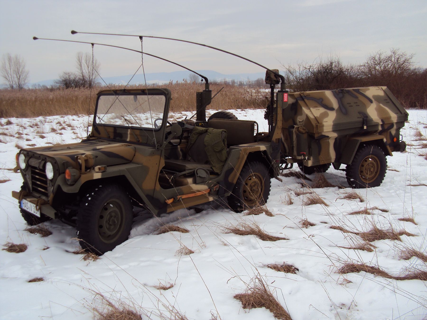 Nach vielen Problemen mit der Farbe und nach langer Zeit habe ich nun endlich die Farbe drauf. Natürlich habe ich das Teil wieder mit 4 Farben nach dem MERDC-Tarnschema lackiert (Tarnschema etwas leicht verändert). Die Anhängerwanne werde ich innen nochmals lackieren, da einiges an Farbnebel rein ging und sichtbar ist. Es ist natürlich noch einiges zu machen, sollte aber in den nächsten 14 Tagen erledigt sein (mir fehlt noch der Stoßdämpfer für die Auflaufbremse).