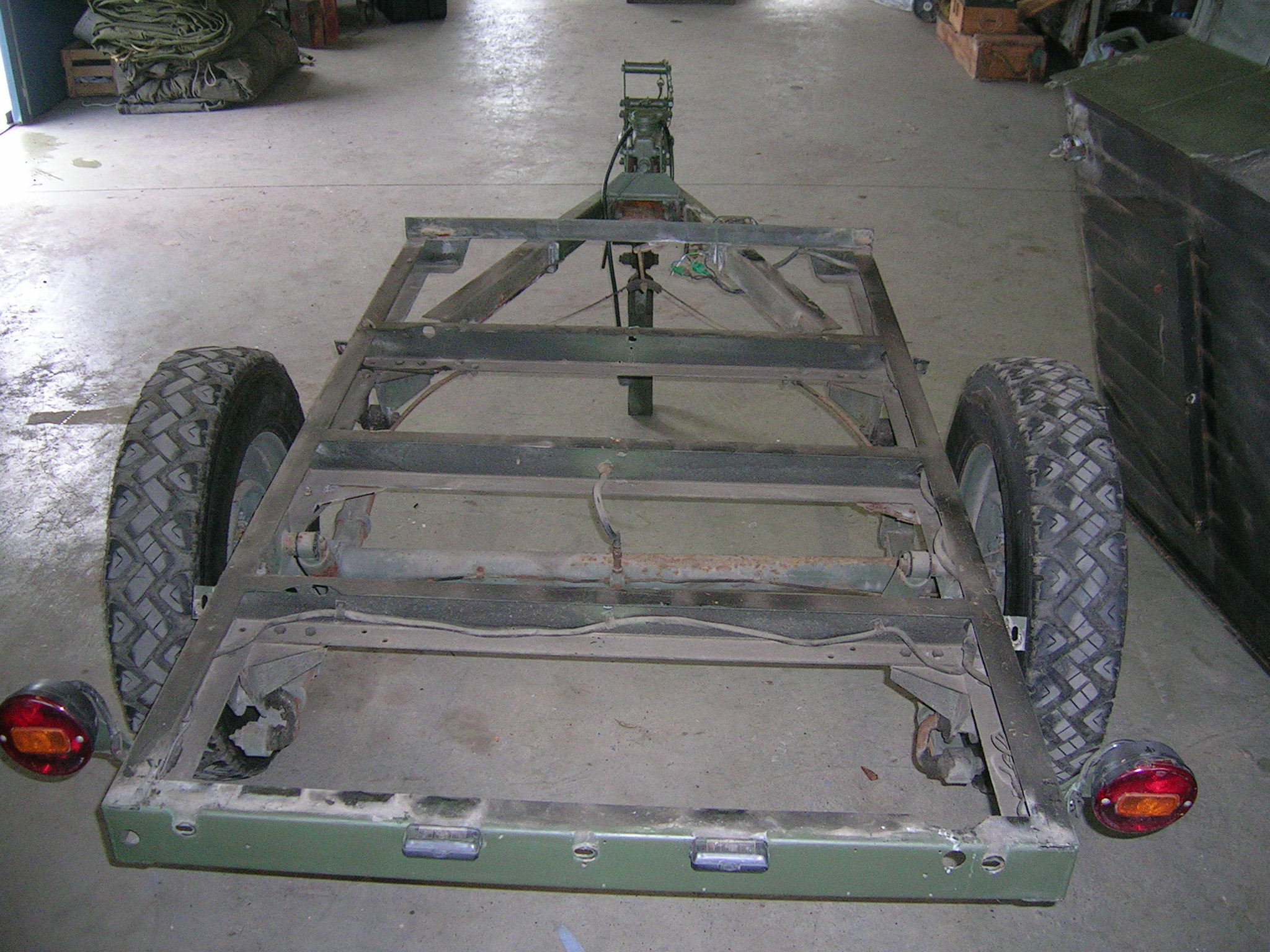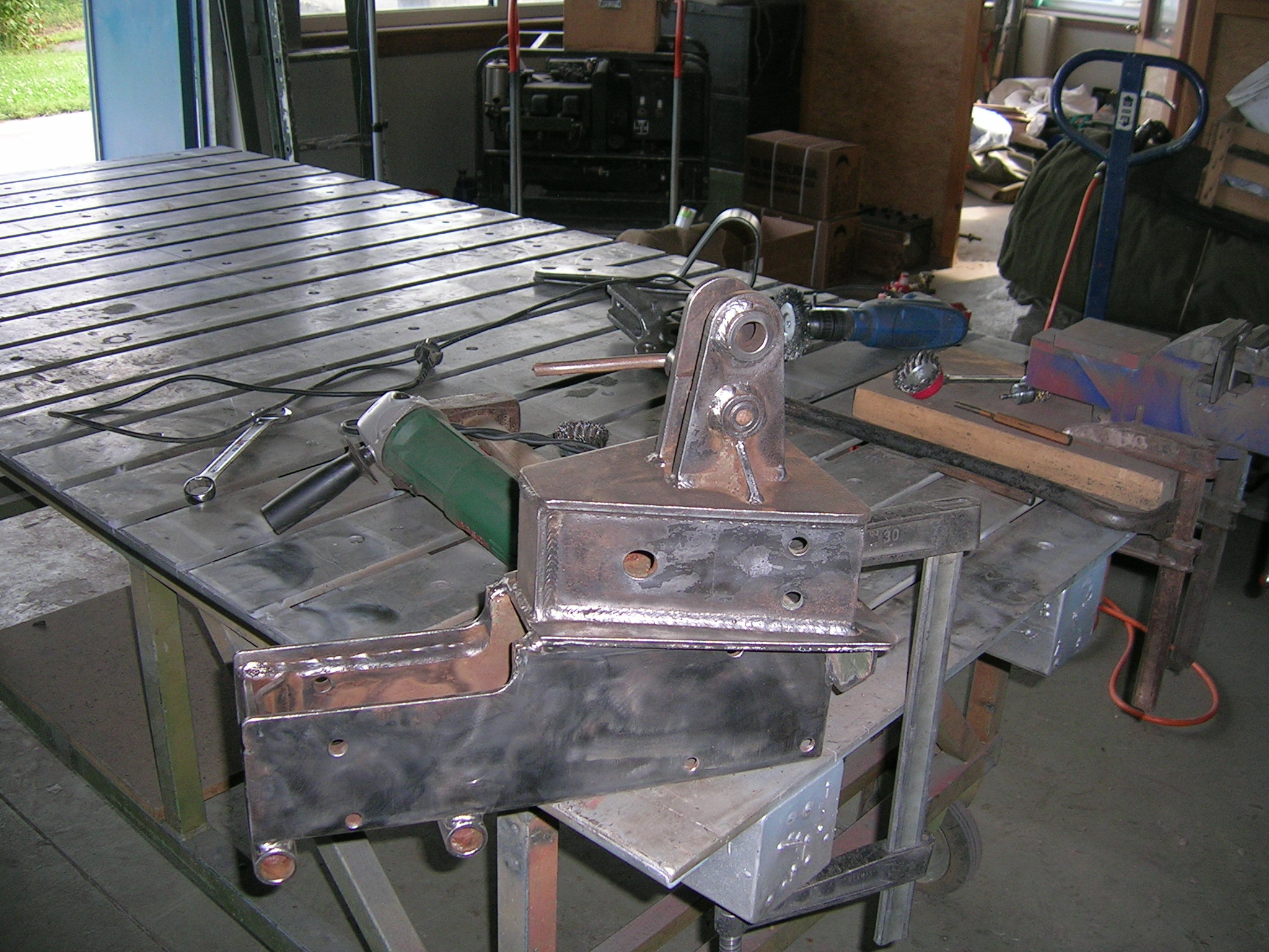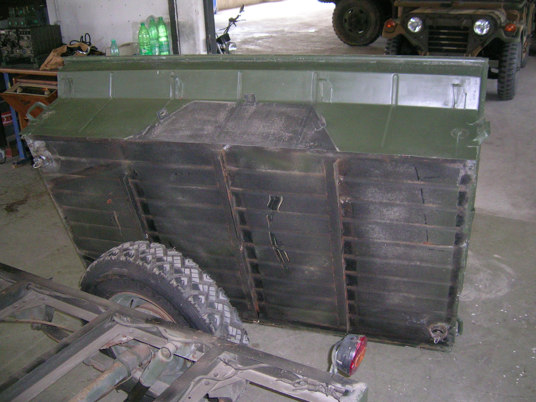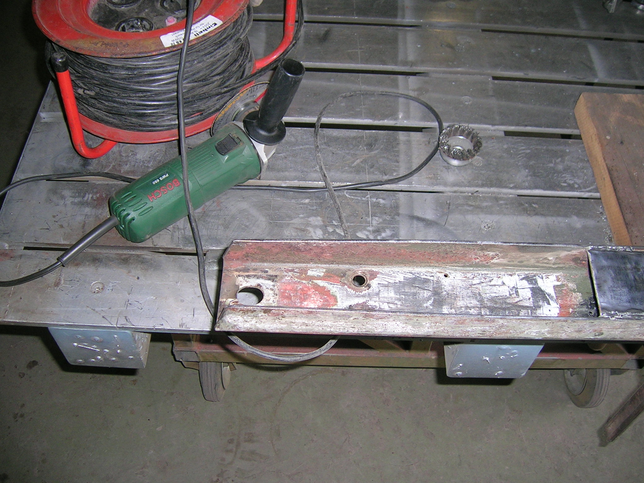 M416er Deichsel wird geschweißt und Hängerwanne wird entlackt