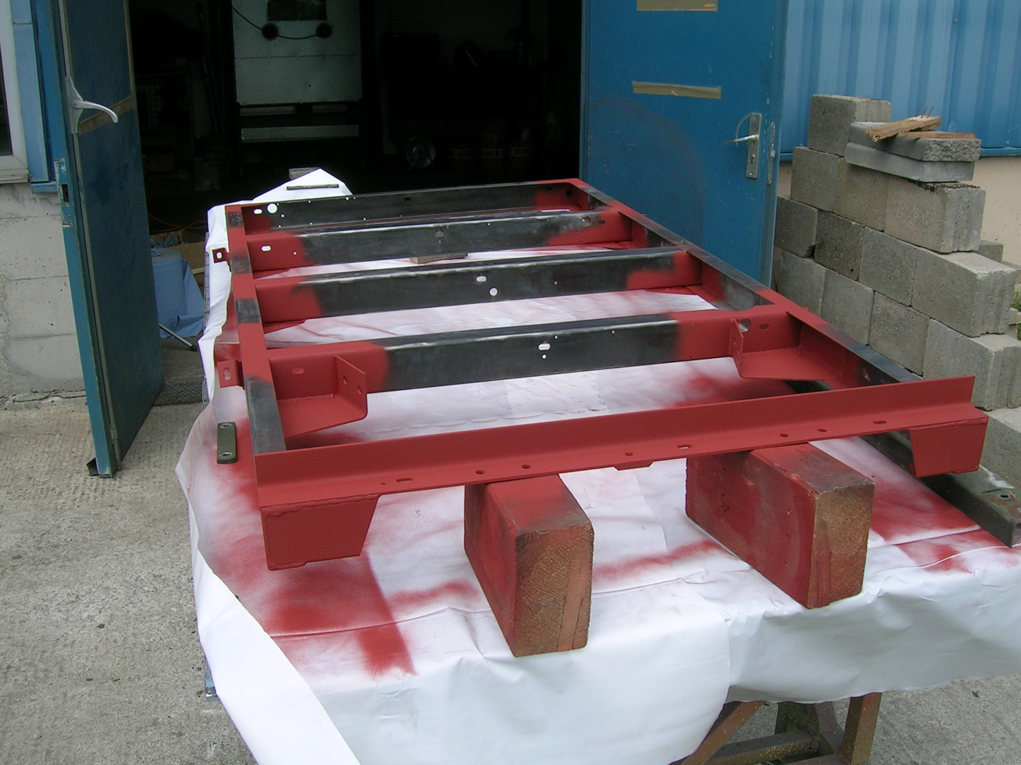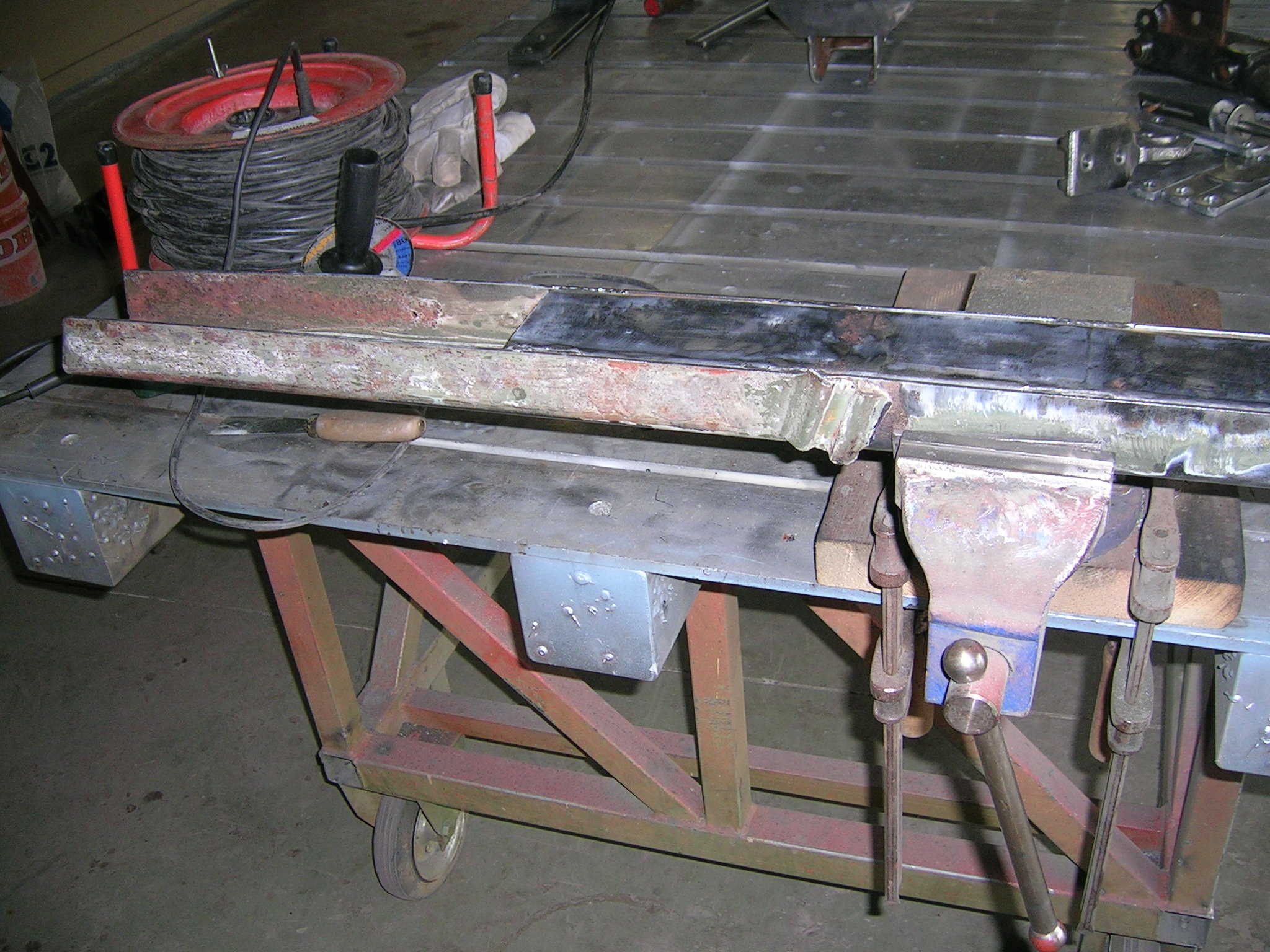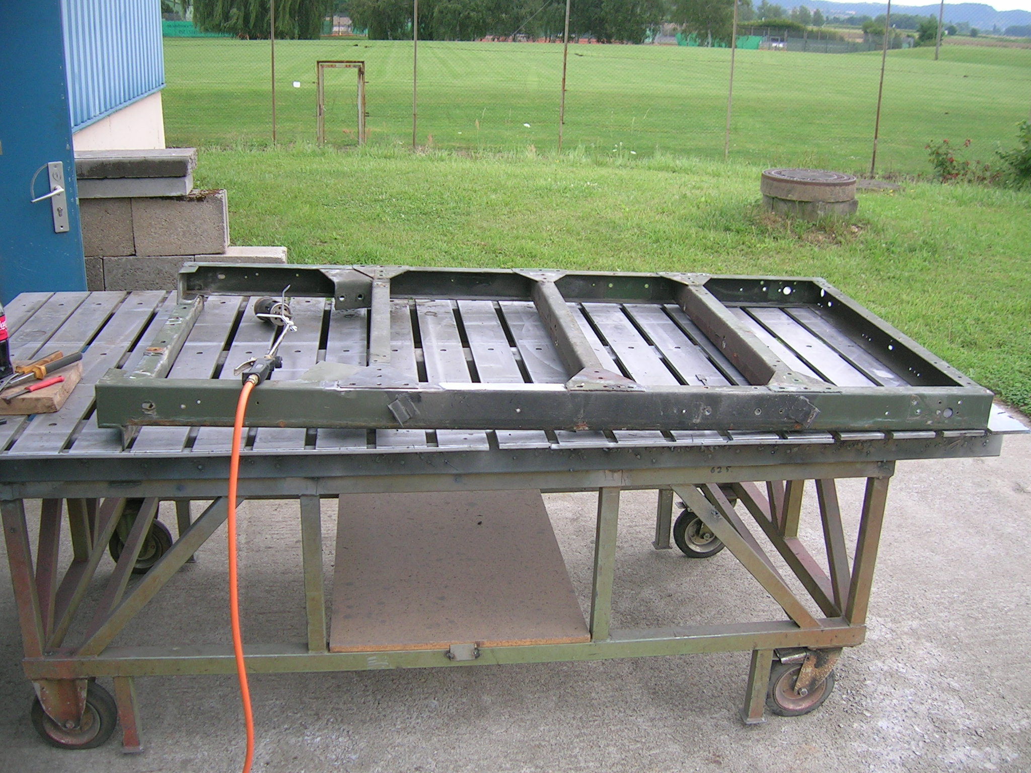 M416er Deichsel wird geschweißt und Hängerwanne wird entlackt