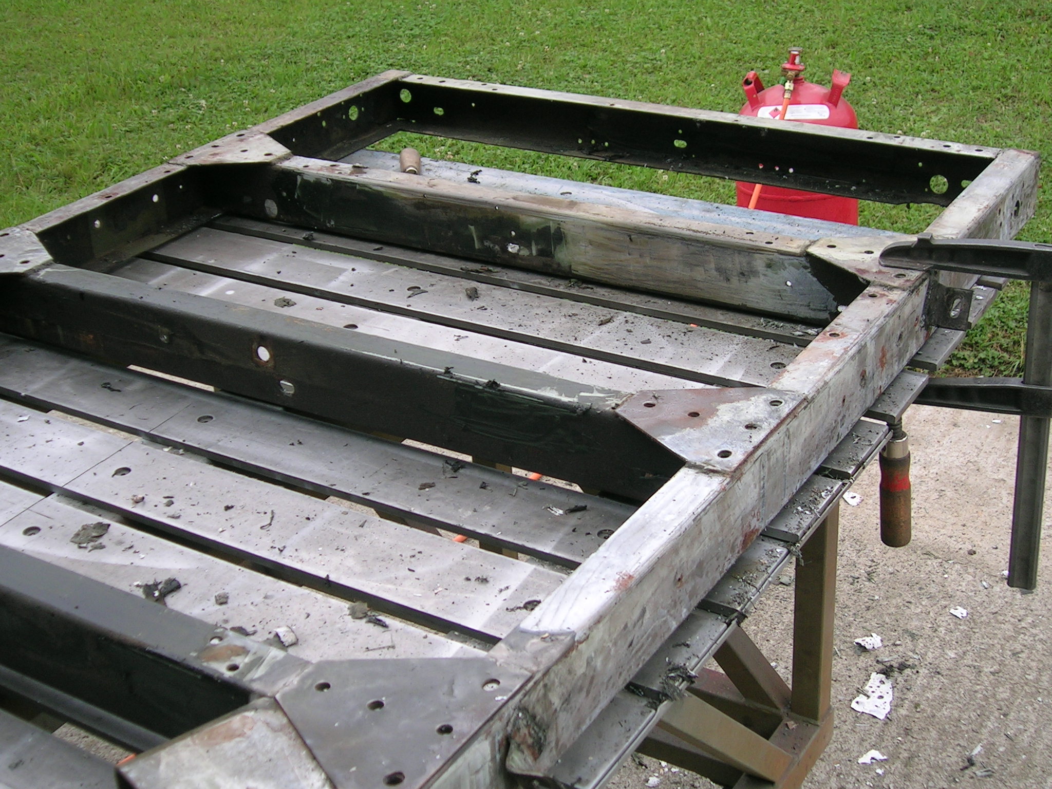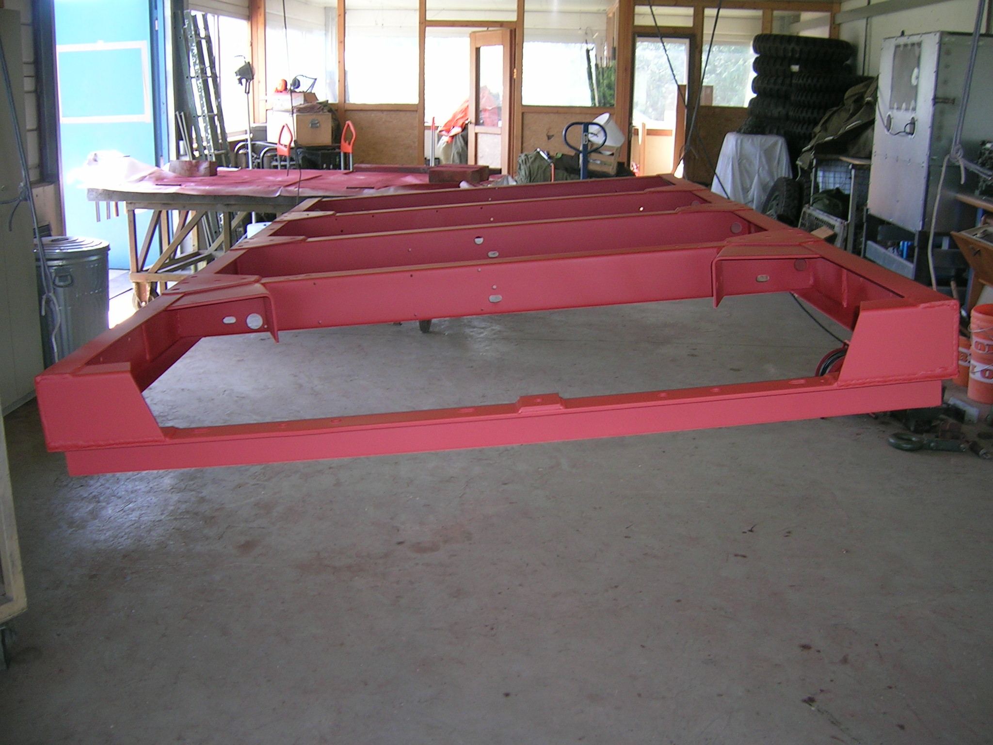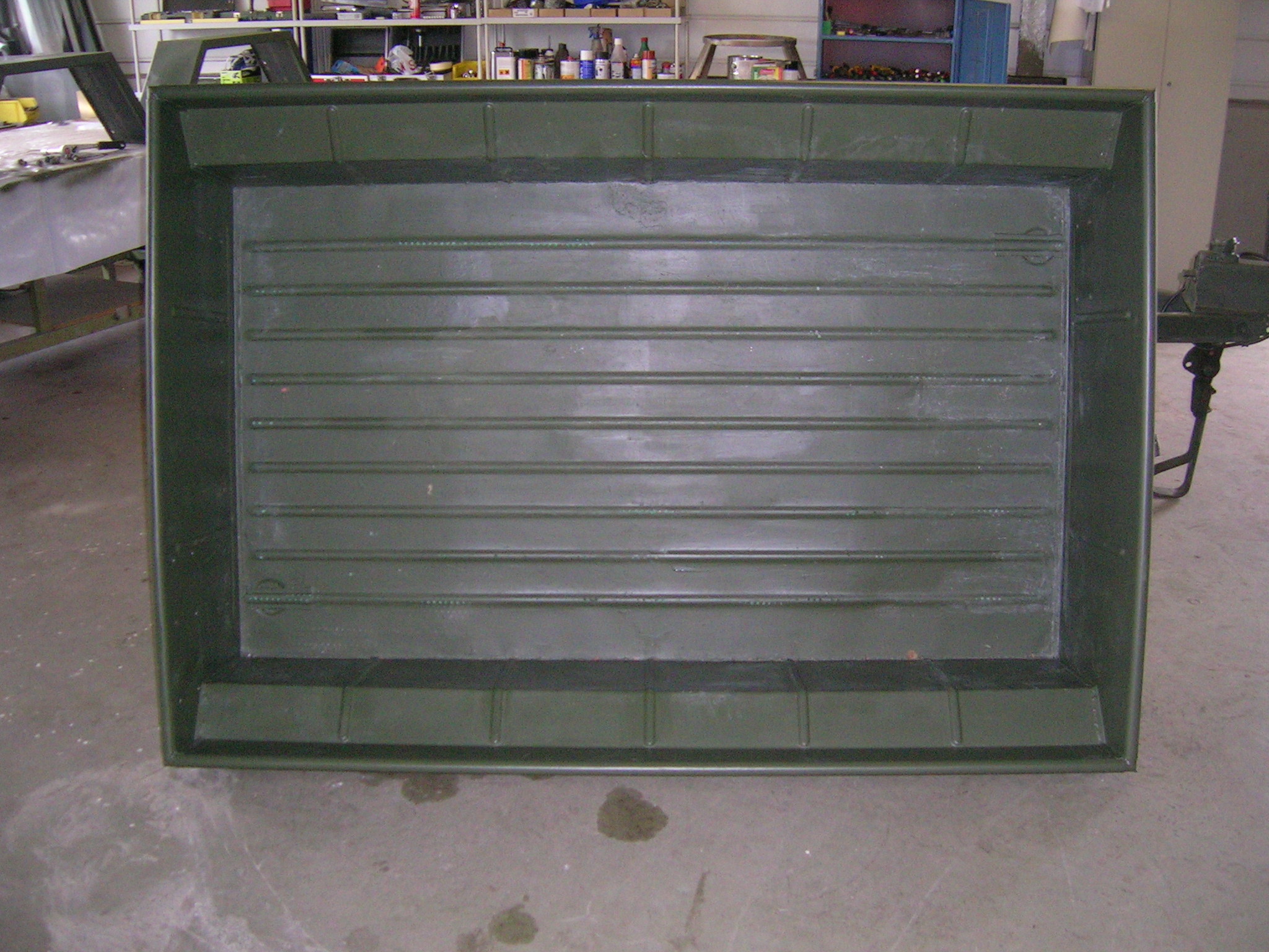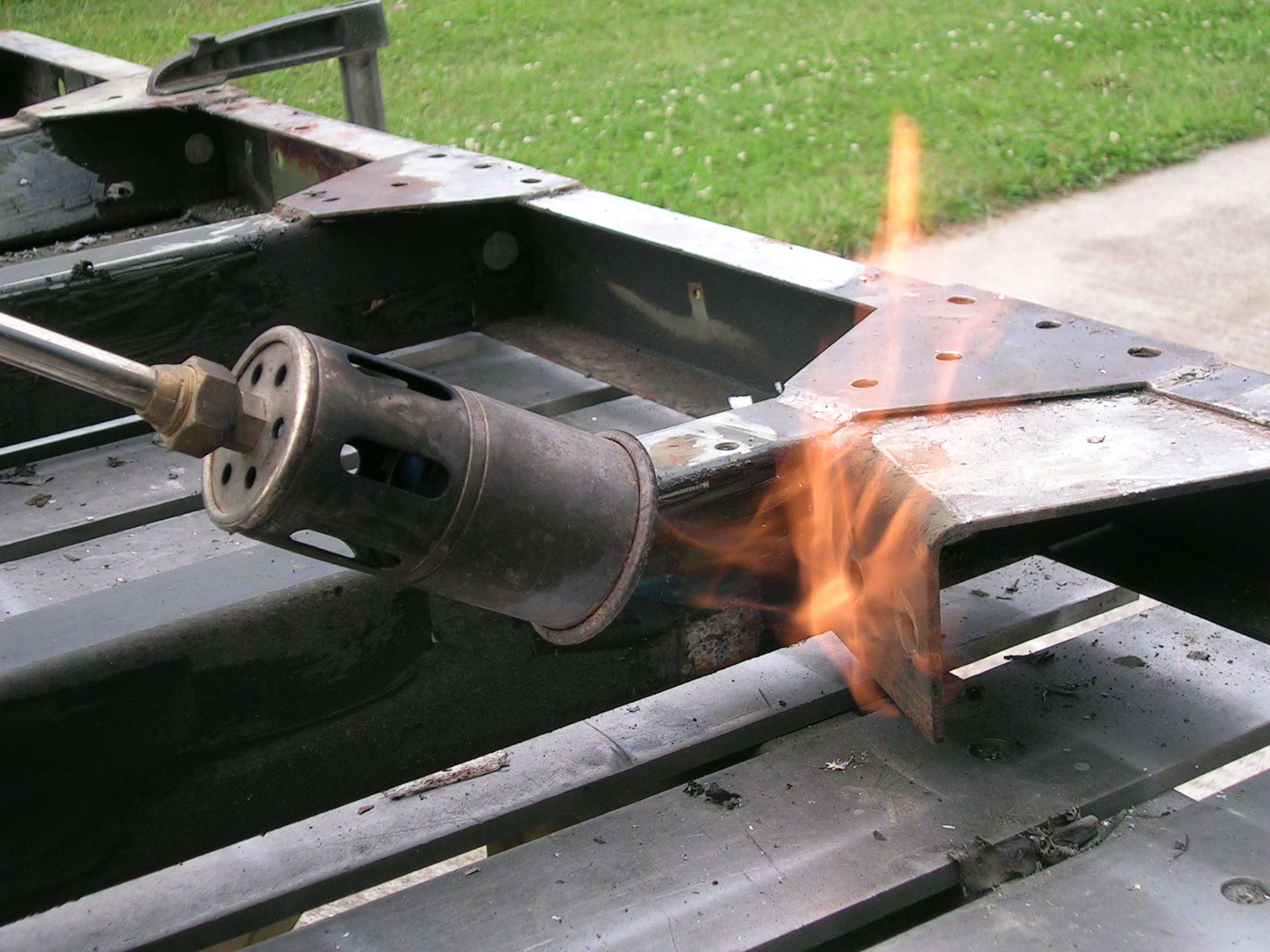 M416er Deichsel wird geschweißt und Hängerwanne wird entlackt