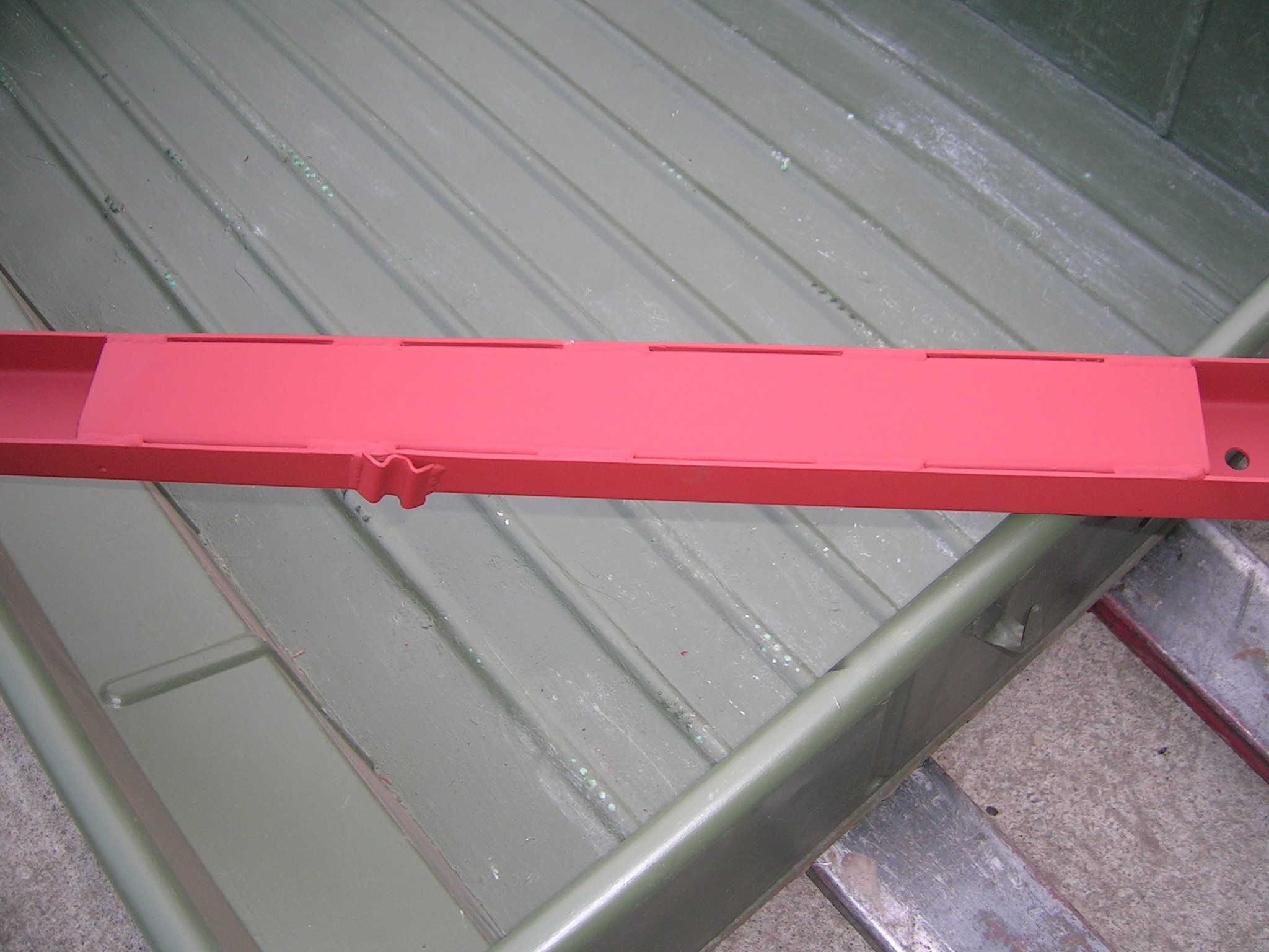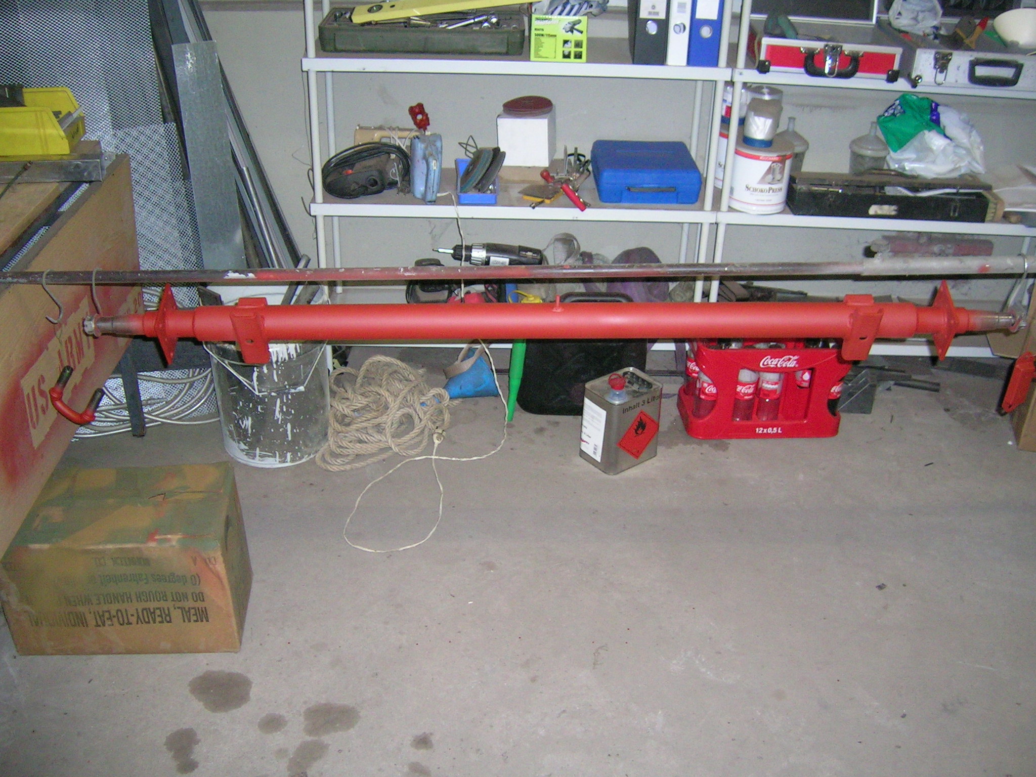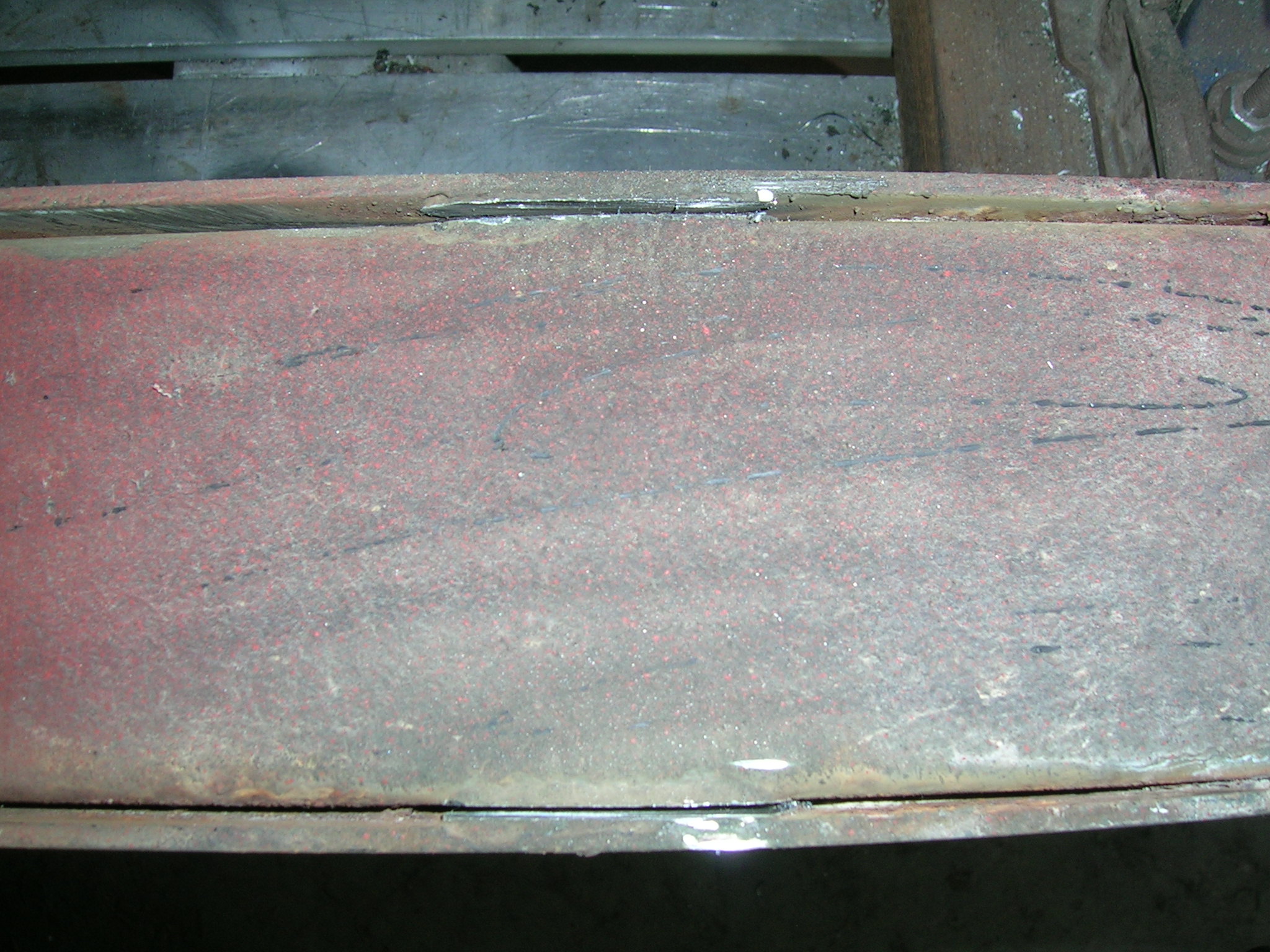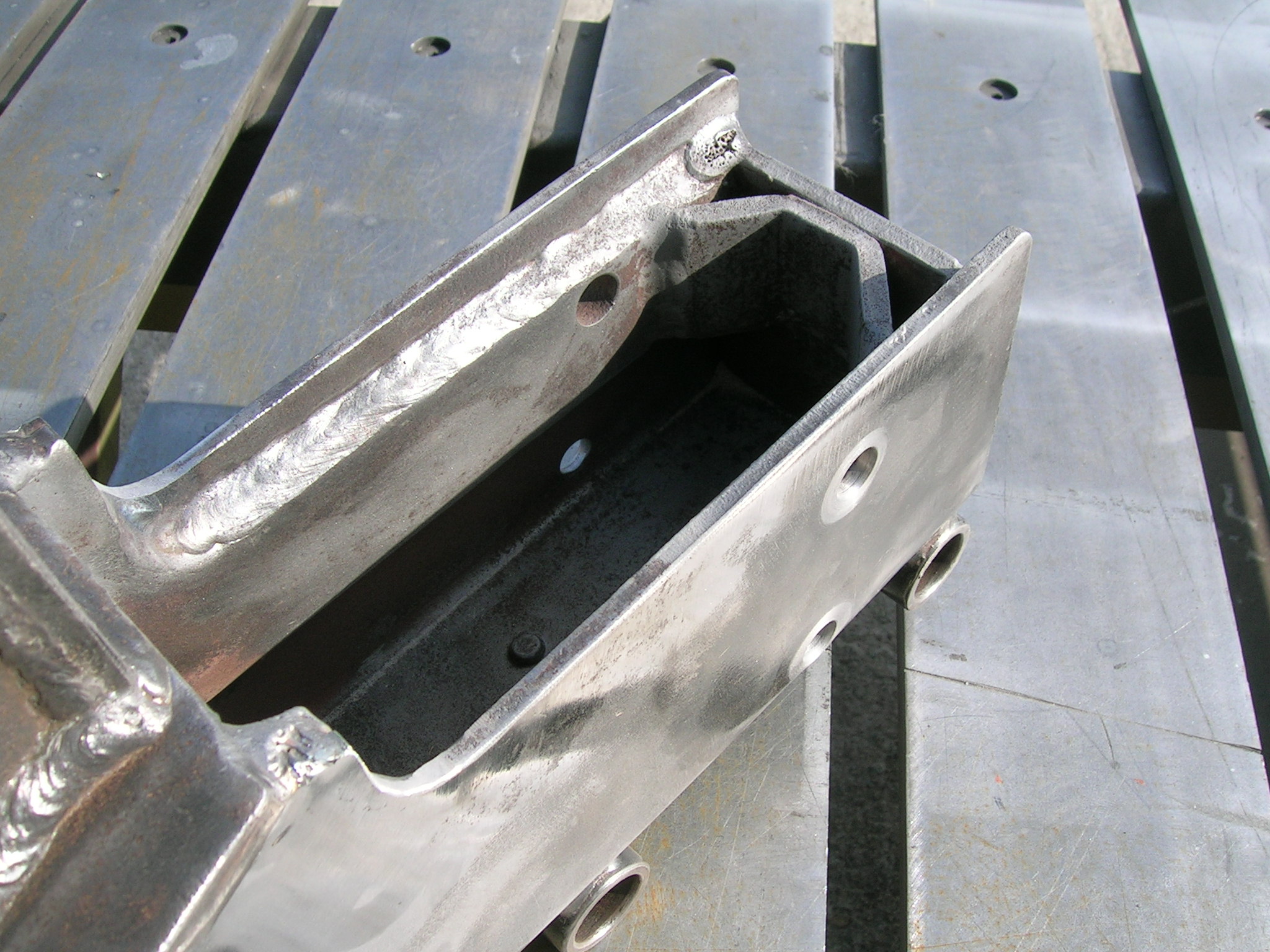 Heute habe ich die beiden U-Profile der Deichsel wieder verschweißt und die Schweißnähte abgeschliffen sowie grundiert. Wie man auf einem Bild sehen kann, muss ich innen nachgrundieren, da durch die Wärme die Grundierung abging. Aber ich denke das ist kein Problem, das werde ich mit einer Lanze machen ähnlich wie beim Hohlraumversiegeln.