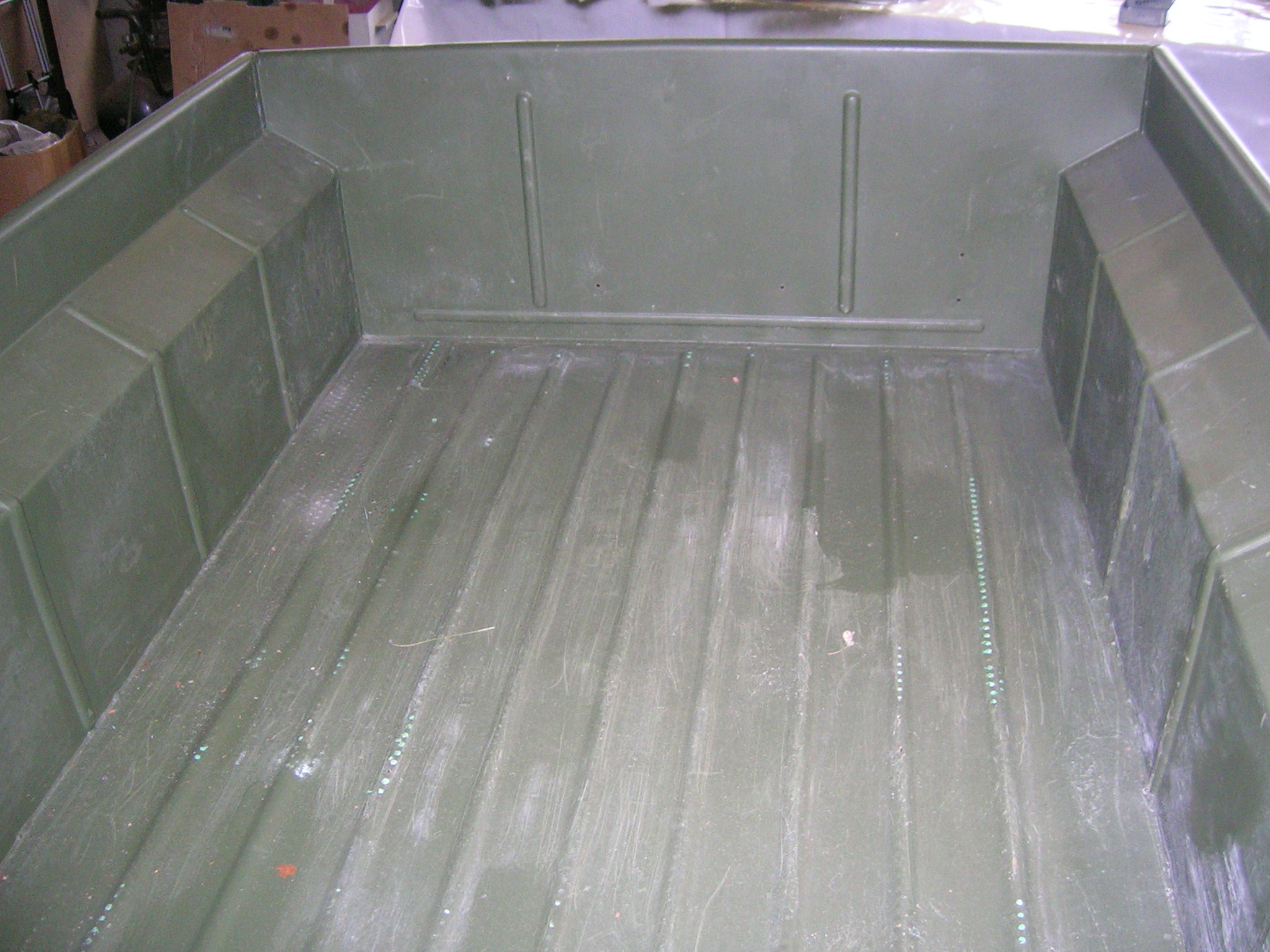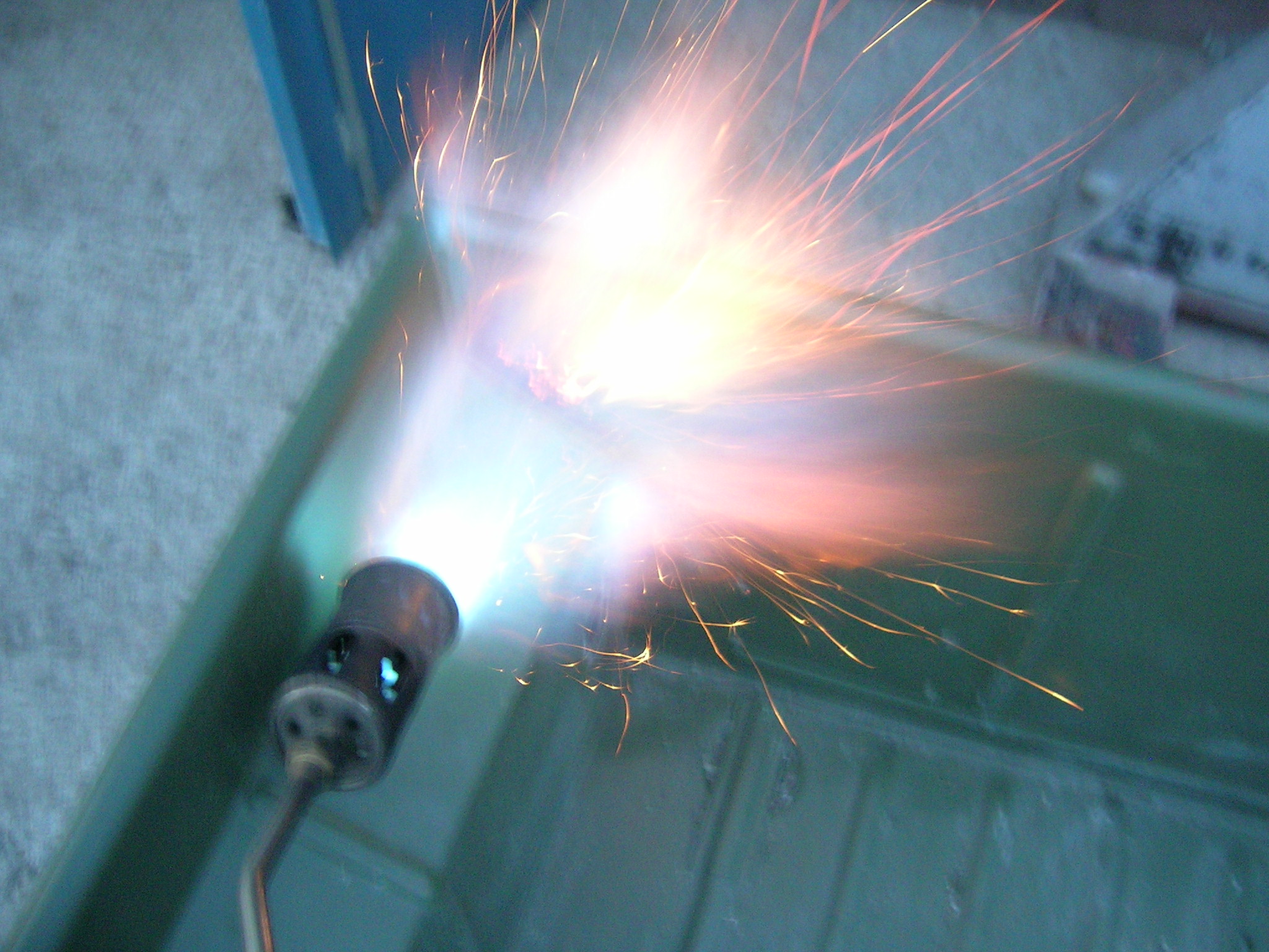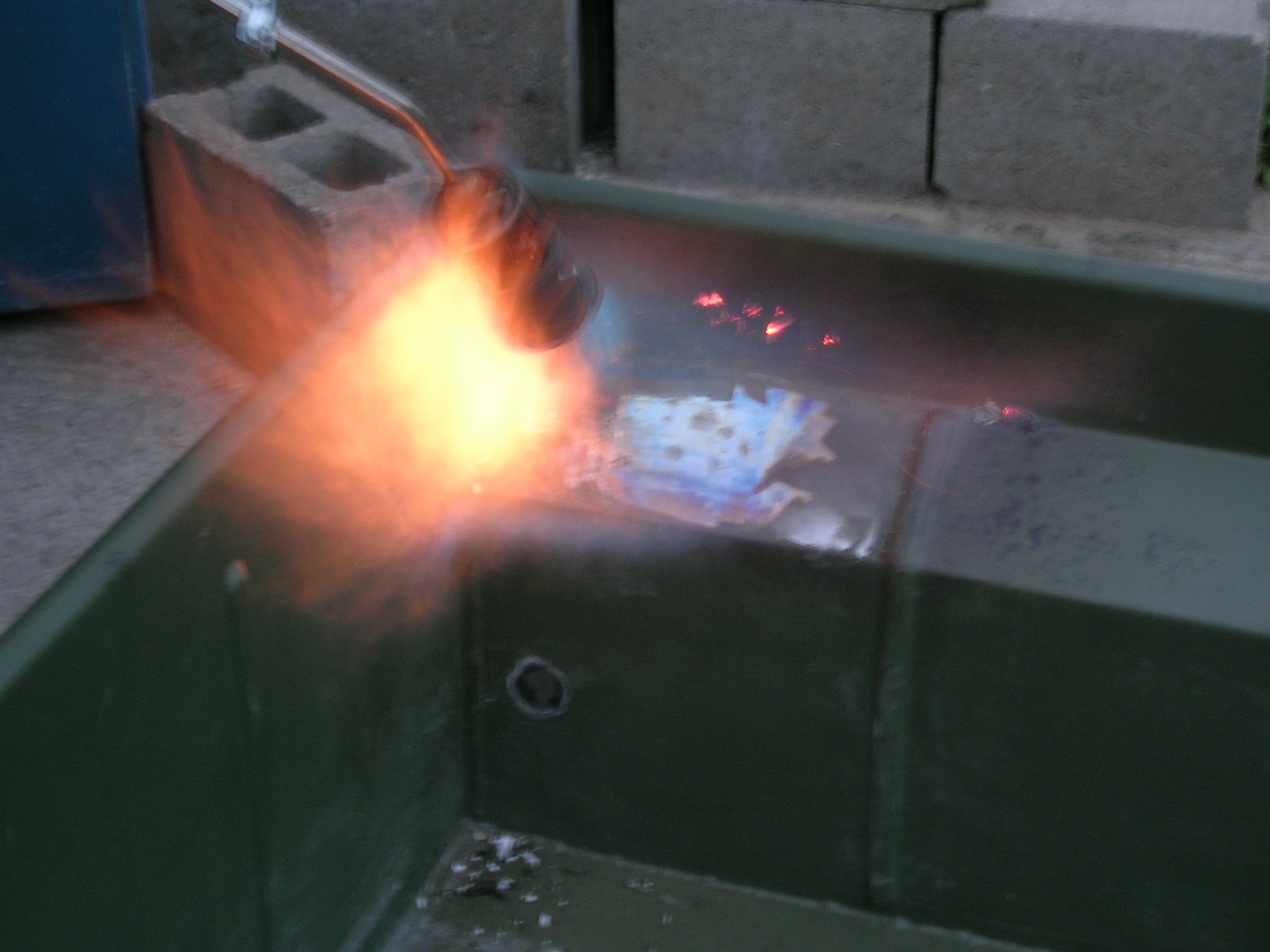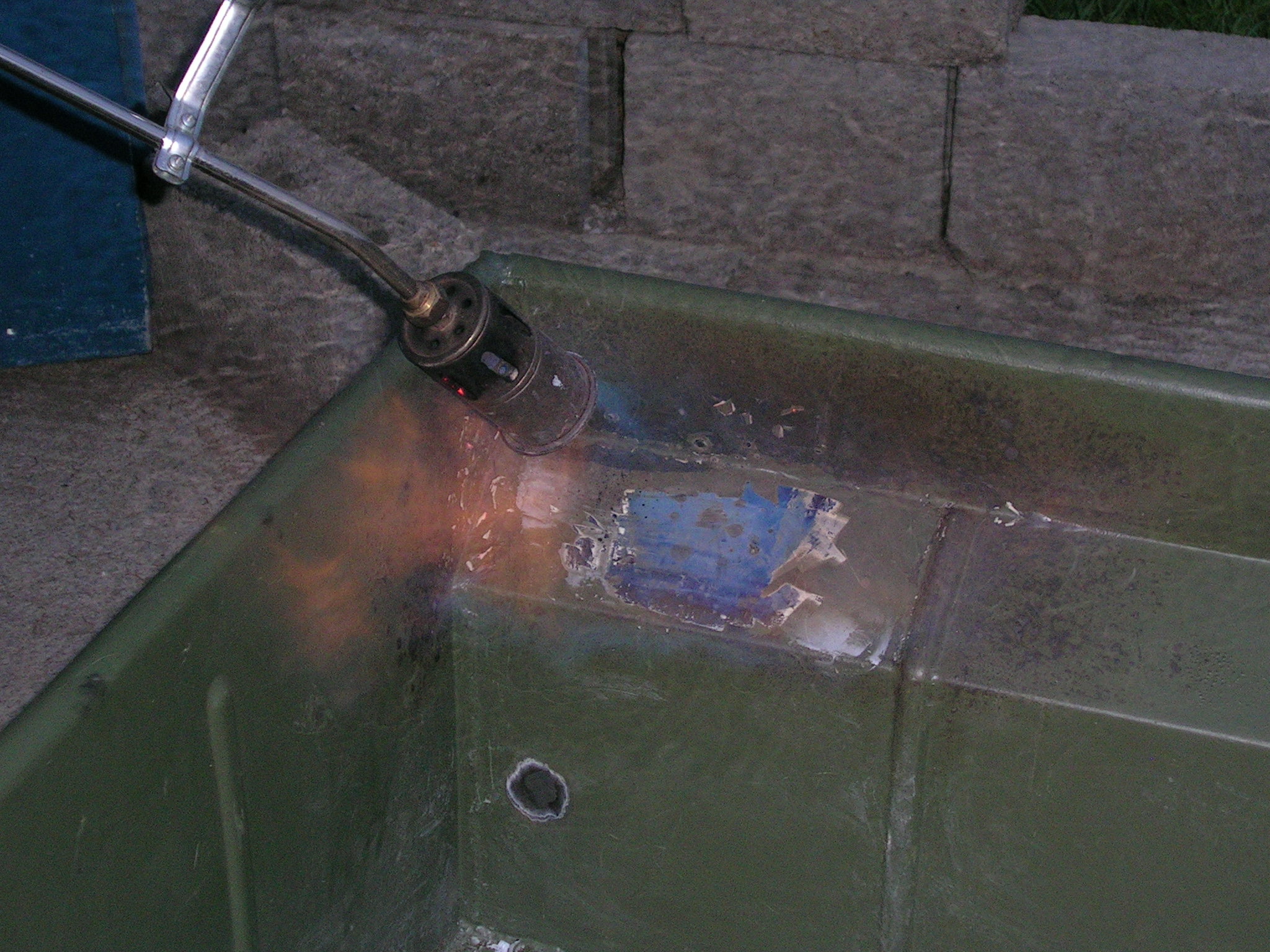 Dann machte ich mich über die Wanne meines M416ers. Ich habe diverse Bohrungen (ehemals für Nummerschild usw.) zugeschweißt und verschliffen. Anschließend habe ich mal versucht, wie es mit der „Wärmebehandlung“ funktioniert. Allerdings habe ich die Befürchtung, dass sich die Wanne durch die Hitze werfen könnte, also ein Frosch rein geht. Wahrscheinlich lasse ich daher die Wanne sandstrahlen …